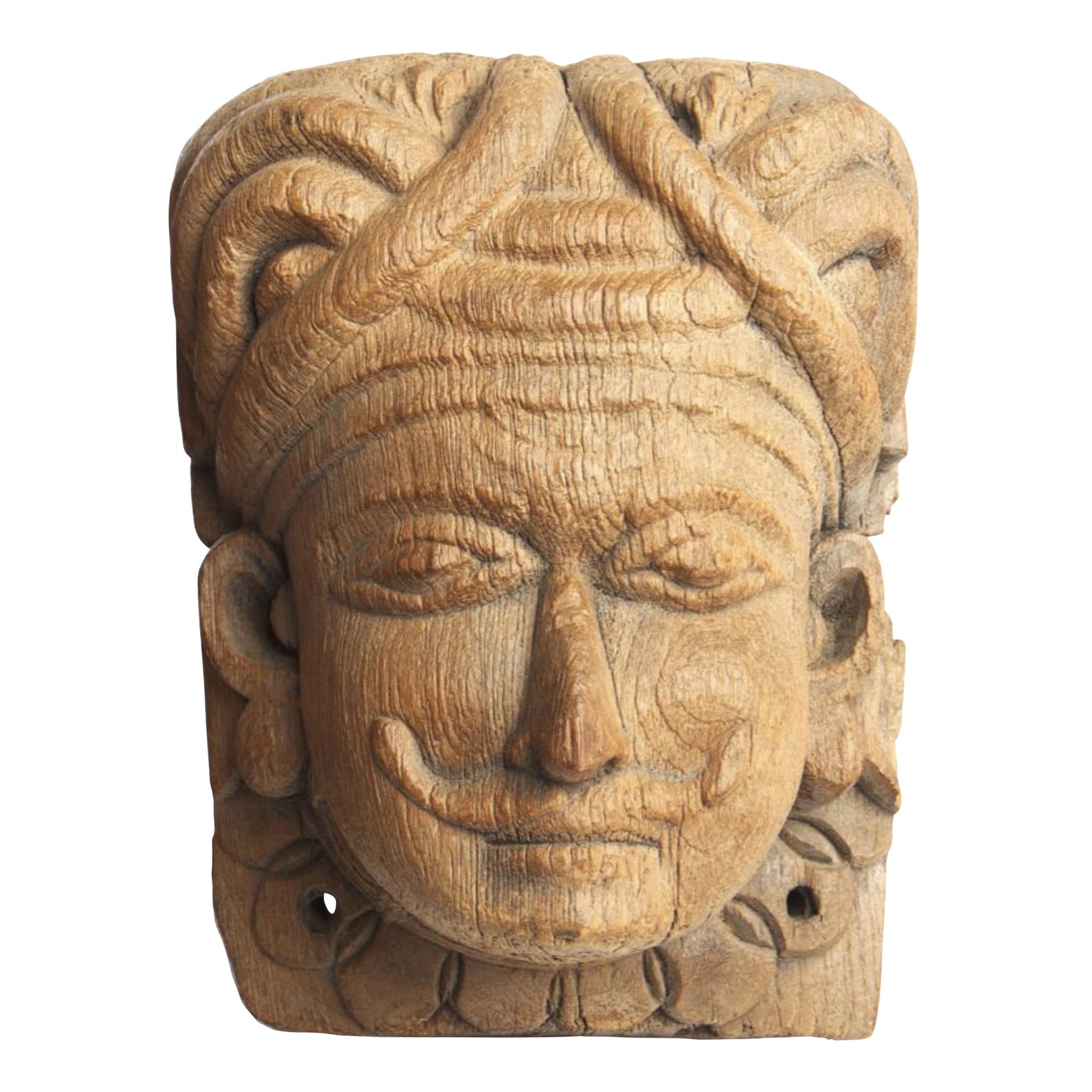TWO INDIAN WOOD PORTRAIT HEADS OF RAJPUTS