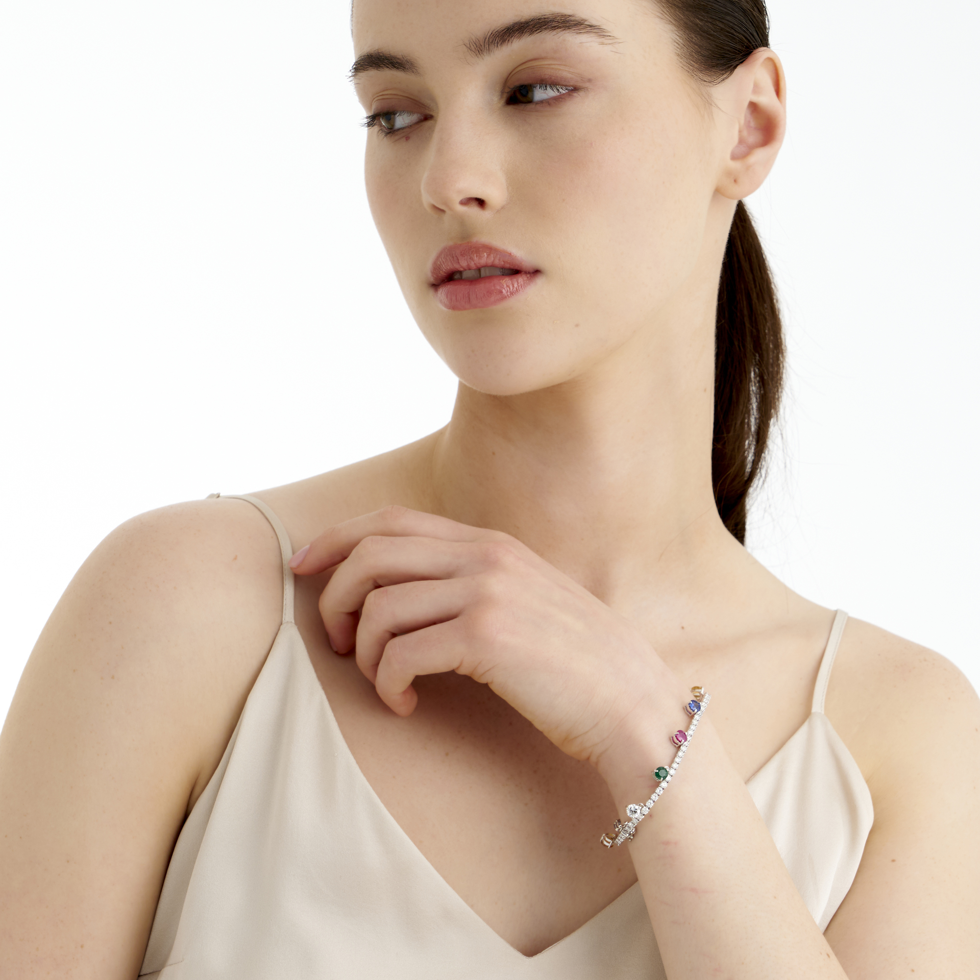 18CT WHITE GOLD, DIAMOND AND GEM-SET BRACELET