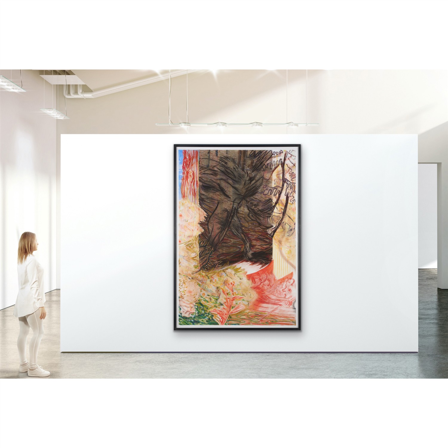 "Hawkes challenges the assumed distinction between the ecologies within the frame of a drawing and the ecologies of the natural world. The subject and object divide of traditional landscape drawing, wavers, hesitates, disappears through the sensation of media. Here we are referring to two things at once: media that is the charcoal and chalk pastels used to make these drawings and the media that is fire, water, air, and earth...This is Hawkes' contribution: to add to the conversation of what it feels and means to be in this moment where we are moving away from the philosophical and ontological or toward an and. This or that, no longer makes sense. We cannot distinguish between the natural or artificial. Now there is plastics in our blood, we are natural and artificial, we are afraid and hopeful, media (evoking all the word's definitions) will destroy us and save us, the elements – the floods and fires – are over there and they are inside us."