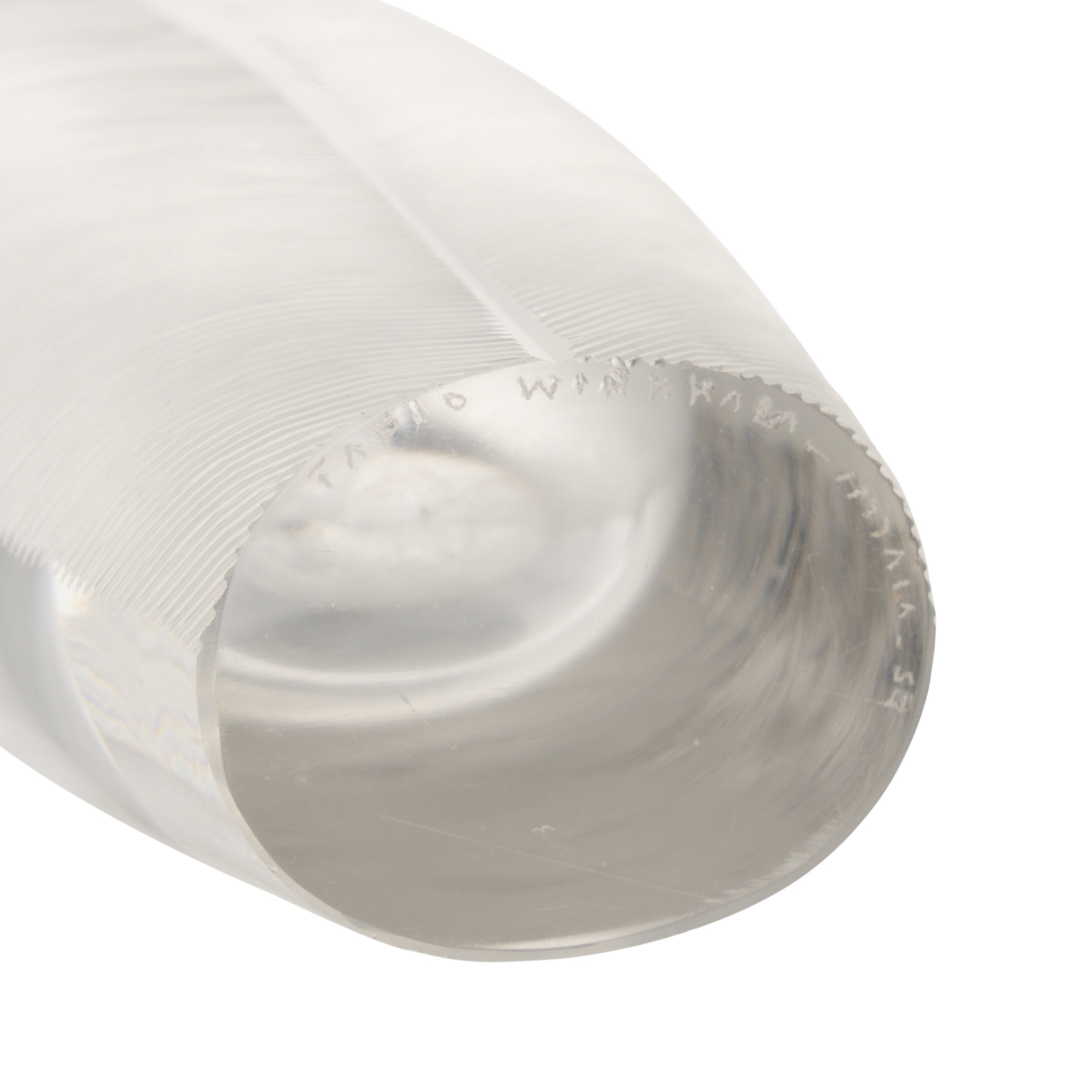 Mould blown crystal with feathered comb-cut texture to one side. Signed to base.