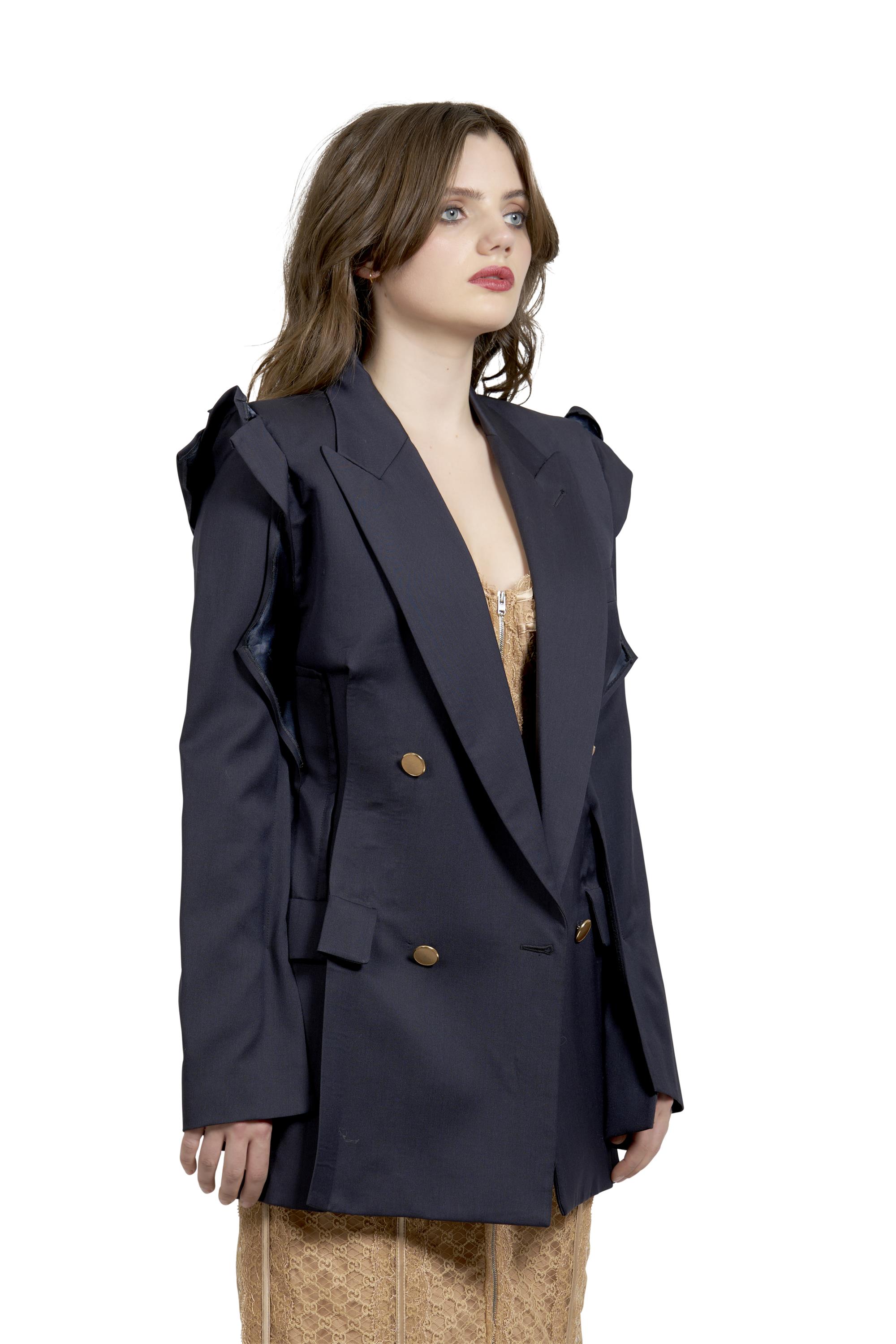 MAISON MARGIELA, NAVY CUT-OUT SHOULDER BLAZER