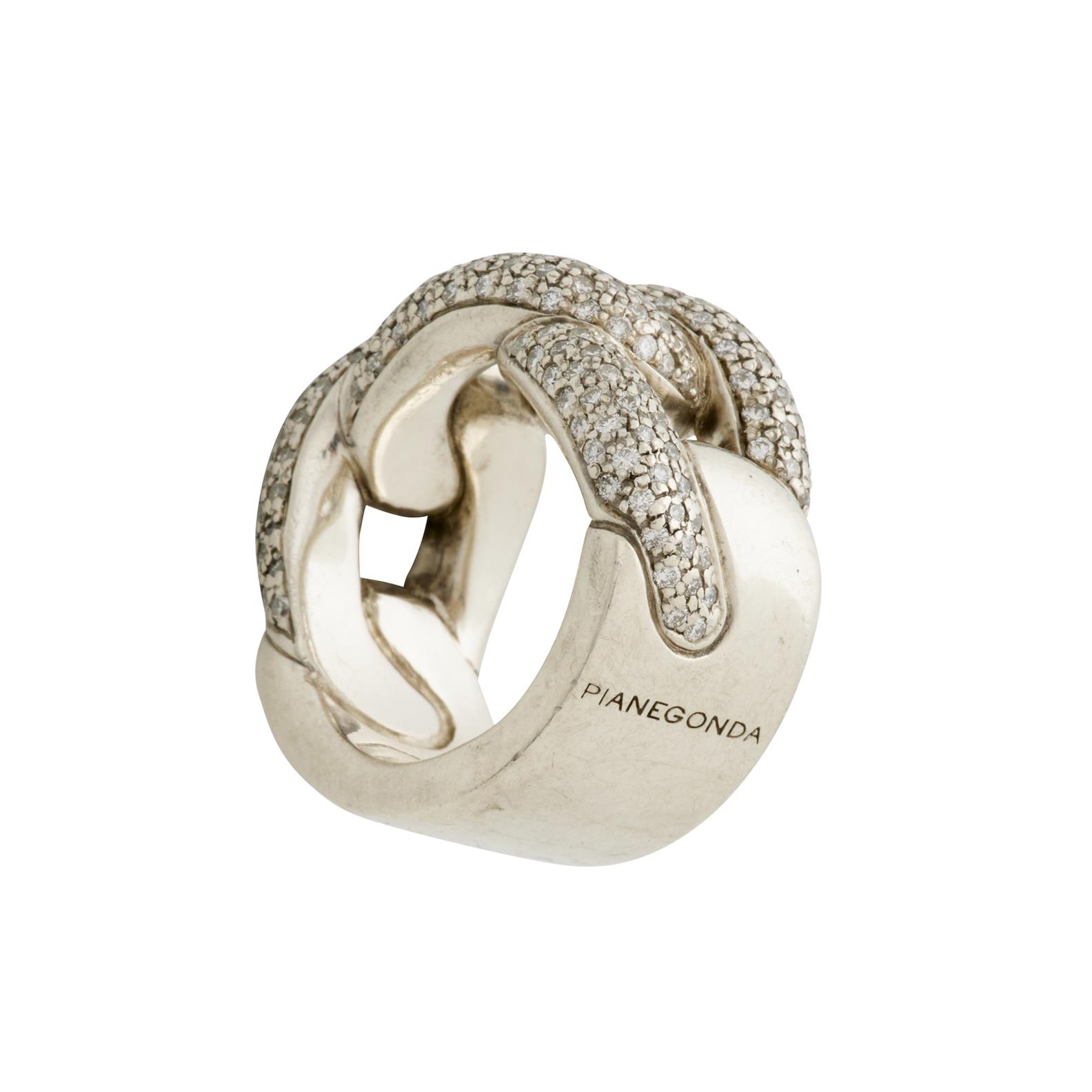 Of chain link design, pavé-set with brilliant-cut diamonds, the diamonds together weighing approximately 2.05 carats, mounted in sterling silver, size U, gross weight approximately 44.2 grams, Italian workshop registration marks, signed Pianegonda.