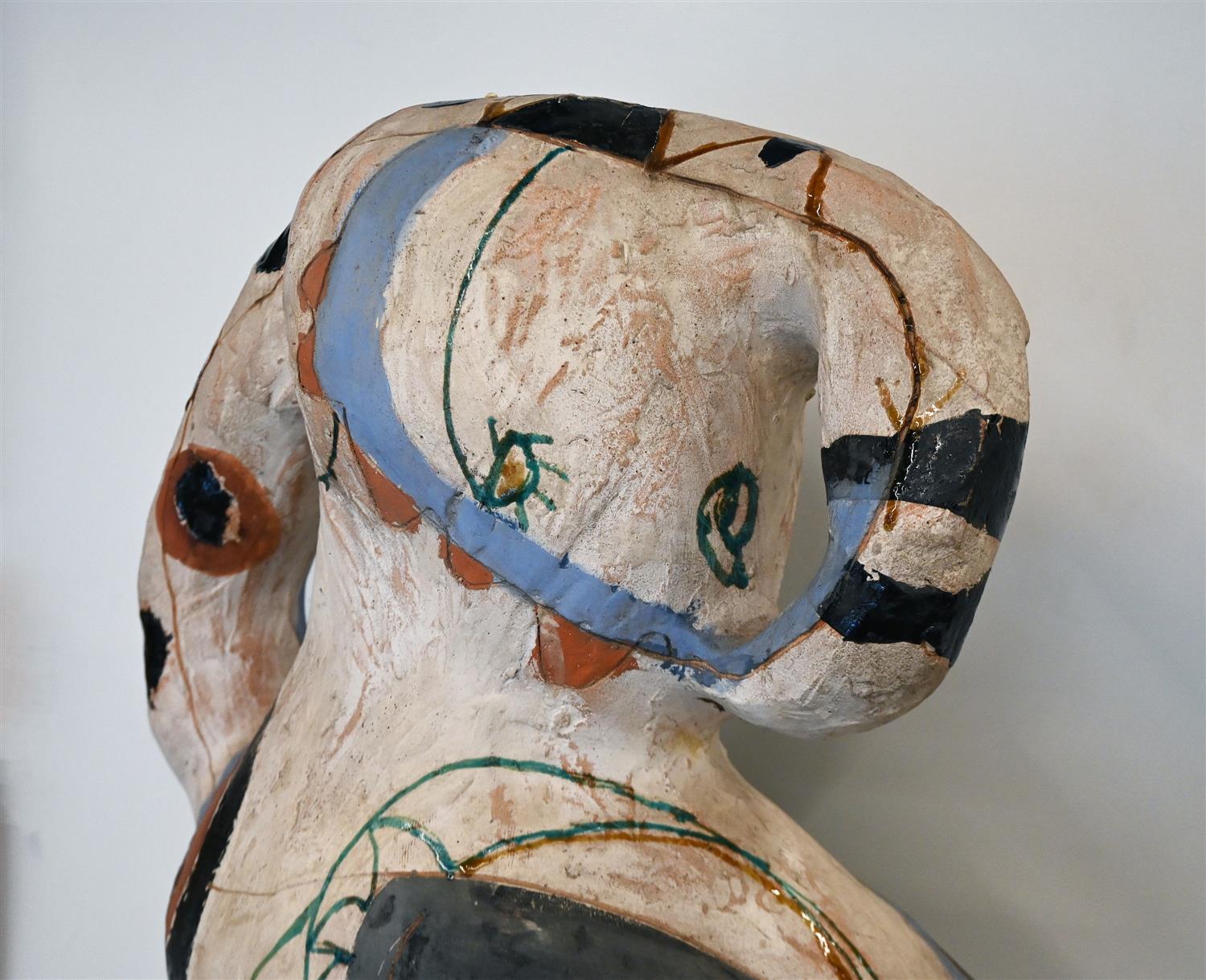 MIXED MEDIA PAINTED ON CERAMIC, UNSIGNED, 80 X 48 X 23CM