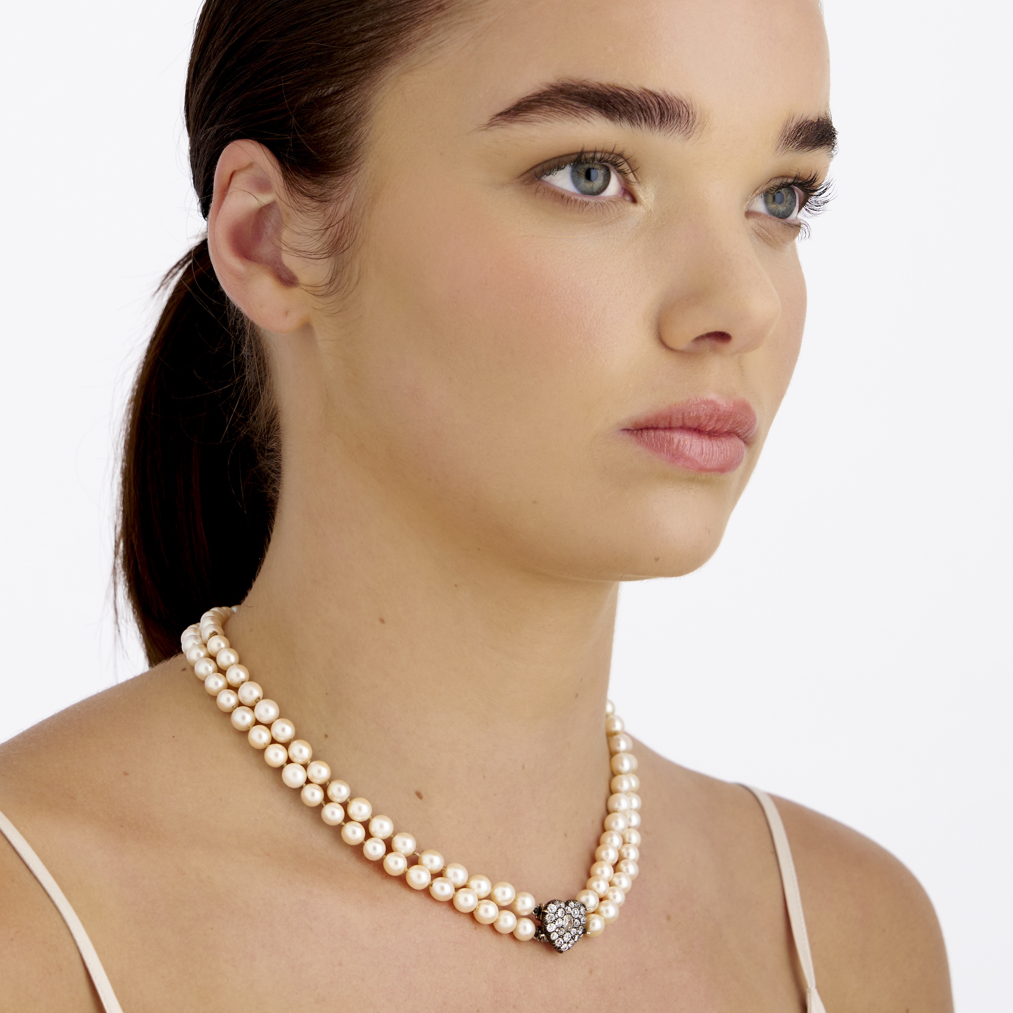 The clasp can be used with each strand of pearls so they can be worn as a single strand or as a double strand.