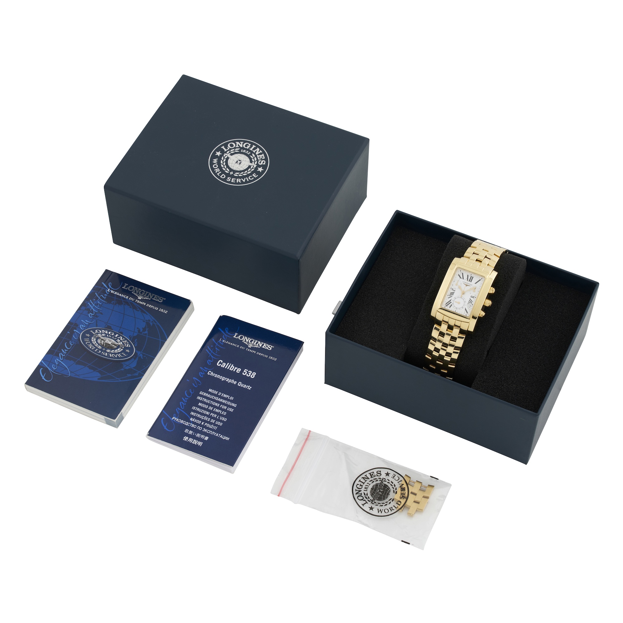 Accessories: Longines international guarantee card dated 19.02.2005, service papers dated 29.09.2025, information booklets, two additional links and presentation box