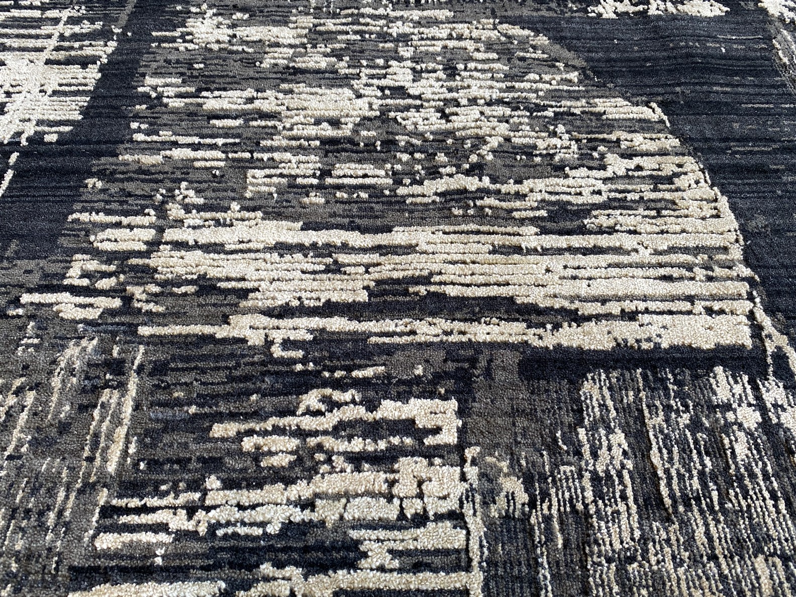 WOOL & BAMBOO SILK WITH VERTICAL & HORIZONTAL DISTRESSED & EMBOSSED LINEAR PATTERNS. THE ENTIRE IN SHADES OF BLACK & BEIGE.