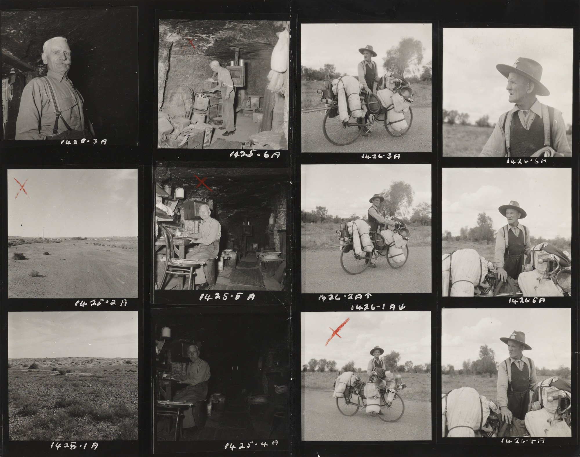 The unpublished close up images of Meredith in Poignant's contact sheets show he is clean shaven with a neat white moustache. He is possibly in his 60s. It is quite likely he had been at a property recently and knew where the next stop would be for his personal presentation to be so well maintained. His provisions would last only a few days without replenishment.