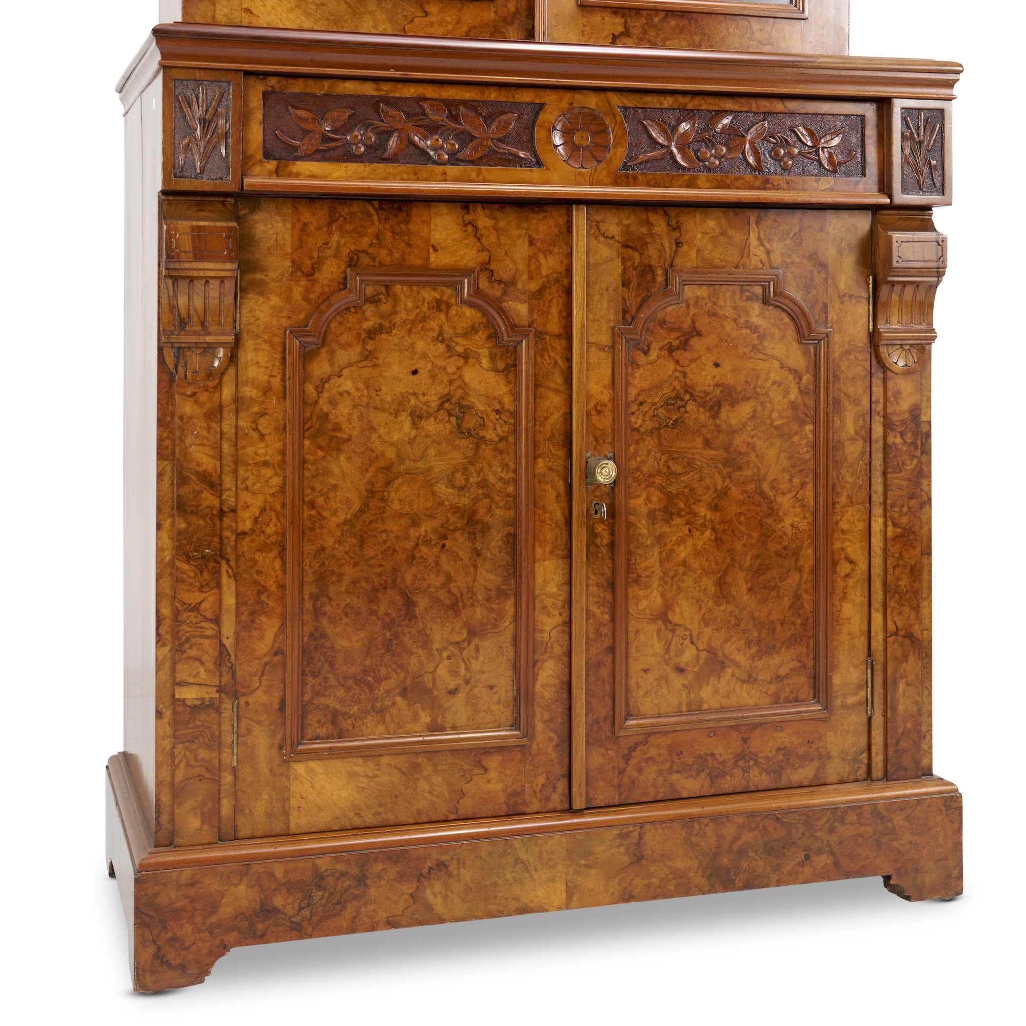 A VICTORIAN FIGURED WALNUT BOOKCASE CABINET