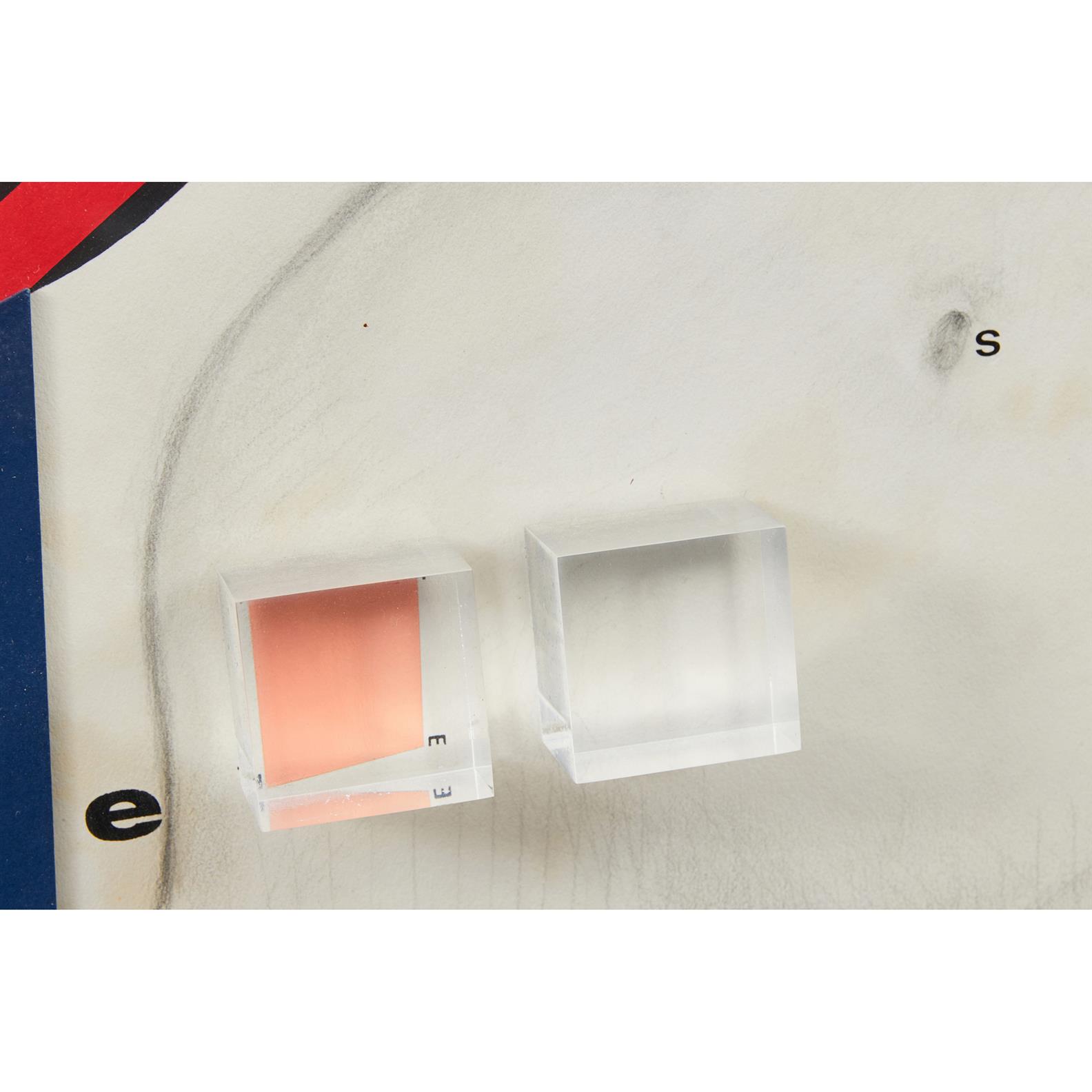 Overall discolouration and foxing to paper, cracking to paint on black 'X', scratch to perspex.