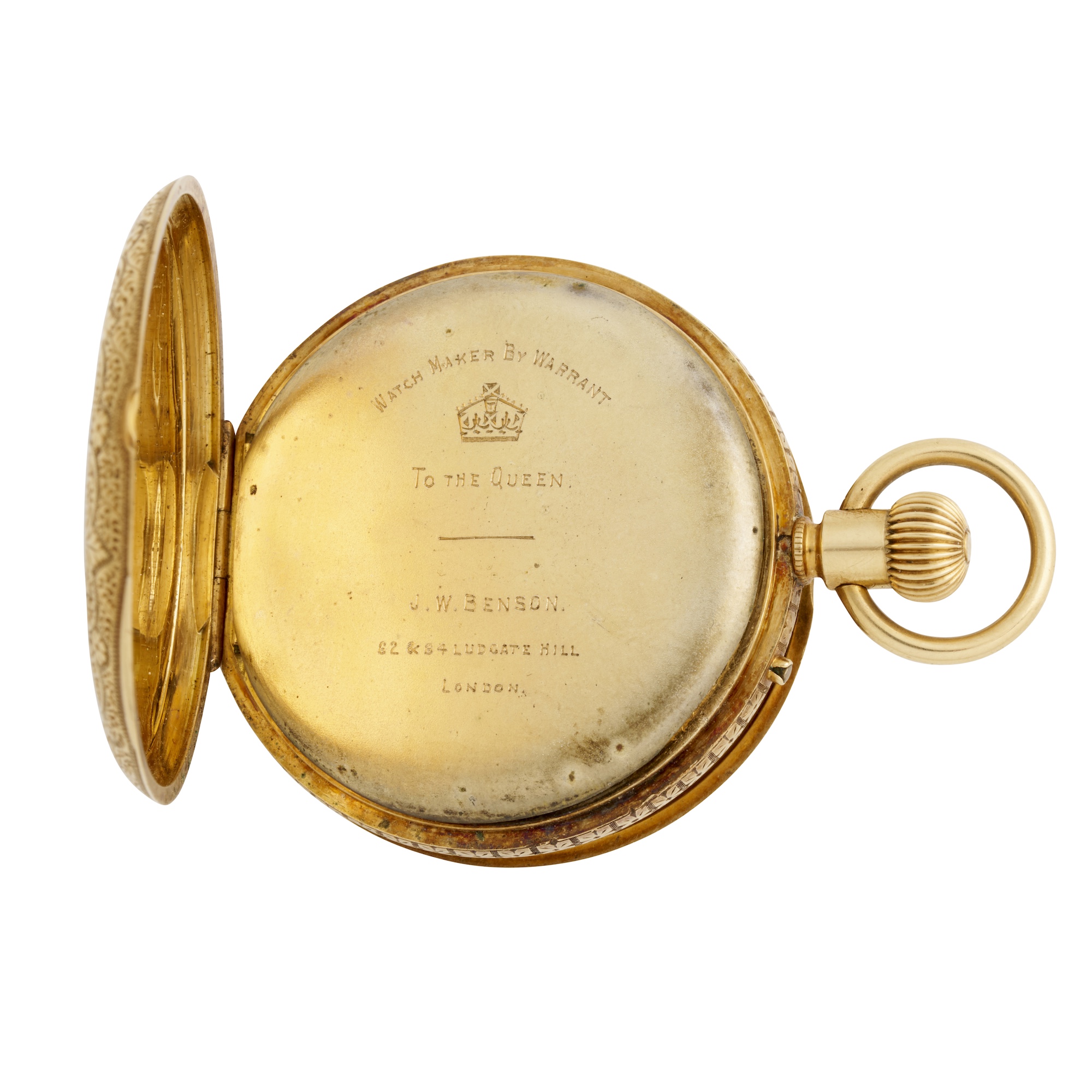 Case: foliate engraved, front cover with blue enamel Roman numerals, gilt cuvette, no. 22356