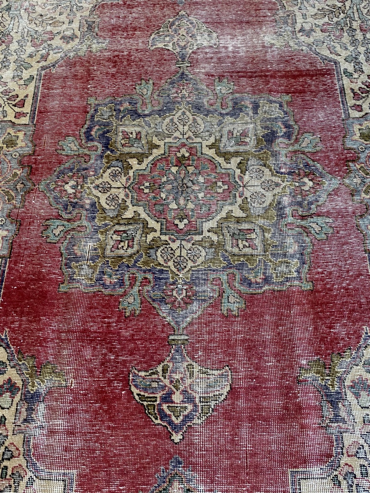 A UNIQUE MODERN RUG CREATED FROM AN ORIGINAL HAND-KNOTTED TABRIZ CARPET HAND-CARVED TO CREATE A DISTRESSED AND VINTAGE LOOK.