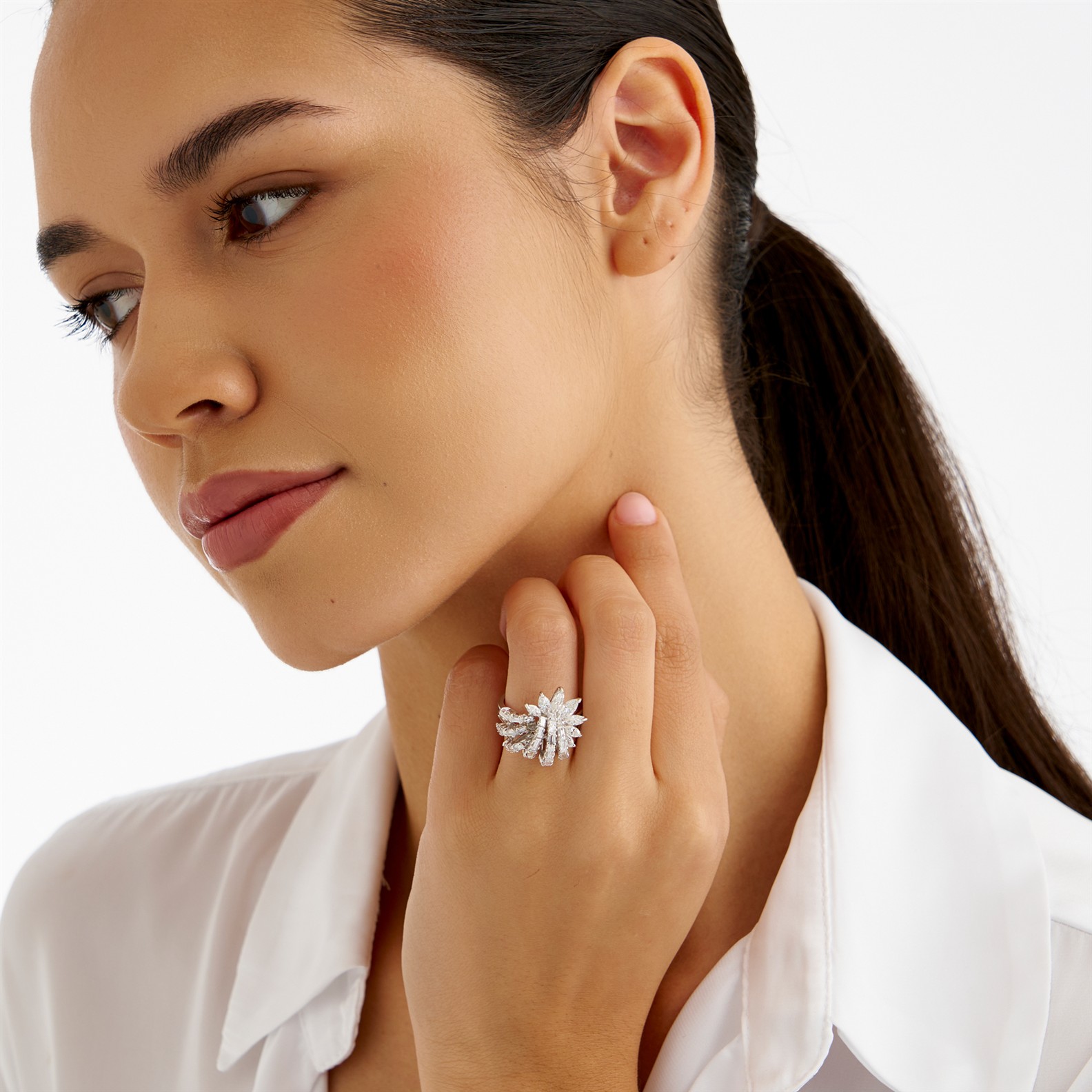 Of cluster design, claw-set with multiple rows of baguette diamonds and embellished with marquise-cut diamonds, the diamonds together weighing approximately 2.00 carats, mounted in 18ct white gold, size O, gross weight approximately 7.1 grams.