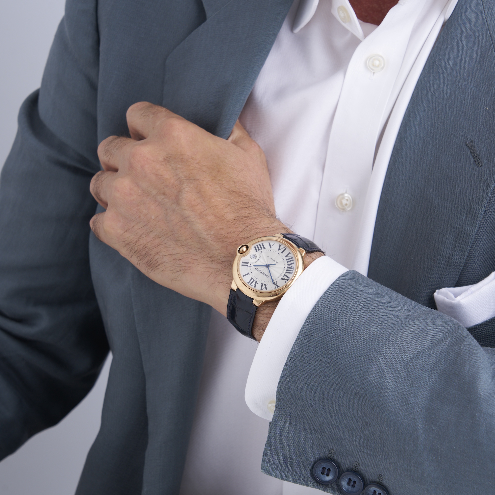 Closure: Cartier navy leather and maker's 18ct gold fold clasp