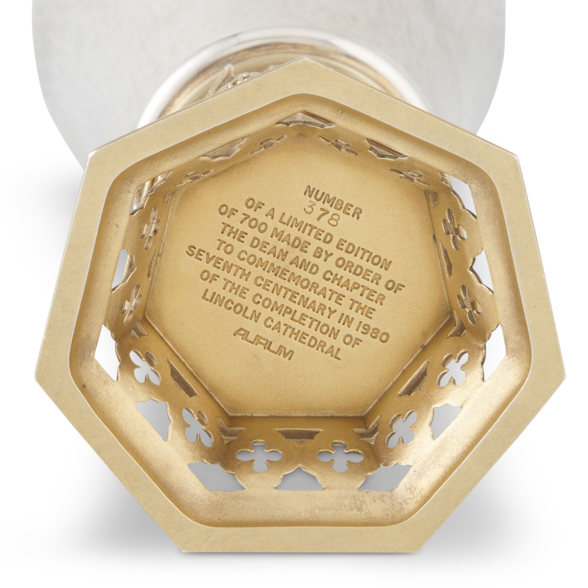 AN ELIZABETH II PARCEL-GILT STERLING SILVER 'LINCOLN CATHEDRAL' GOBLET