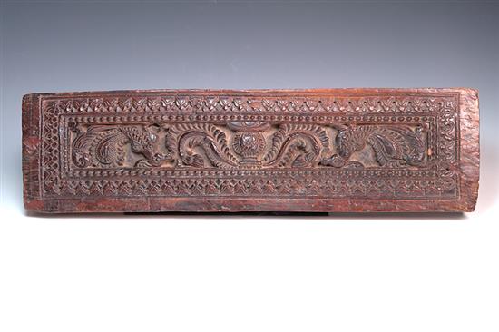 SEVEN VARIOUS WOODEN OBJECTS, including churning stick, spice bowl, water ladle, small harvesting sickle in wooden case, begging bowl, opium bowl and carved Hamsa bird panel The churning stick, 73.5cm long