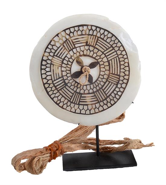 FOUR PAPUA NEW GUINEA KAP KAPS, each with tortoise shell fretwork, 12.5cm diameter