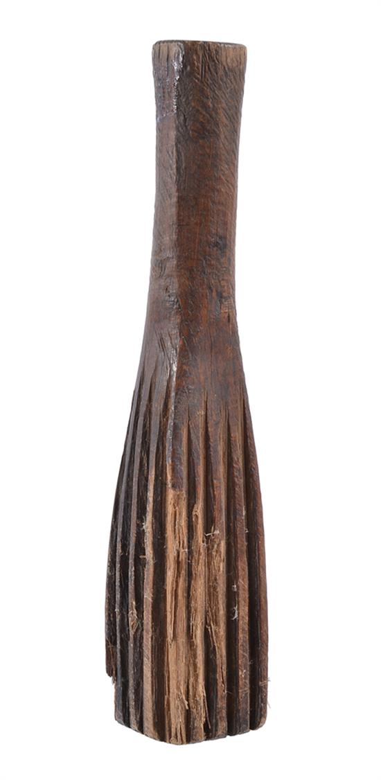 THREE TRIBAL OBJECTS, including Massim betelnut mortar, Tongan tapa beater and West Papuan korwar figure, the latter 21.5cm
