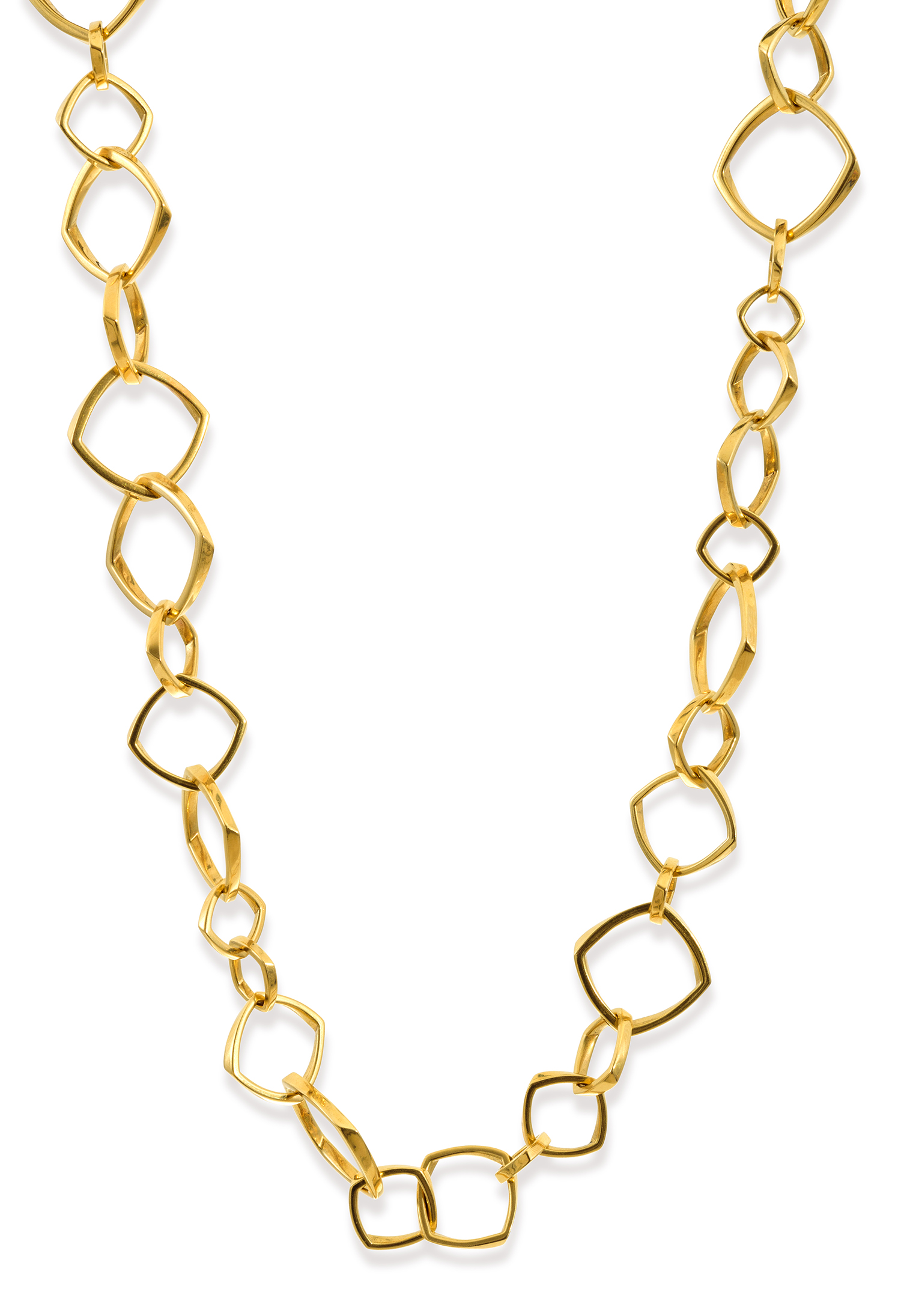 From the Frank Gehry Torque collection, comprising a necklace, total length 960mm, bracelet, total length 220mm, and a pair of associated earrings, length 40mm, all in 18ct gold, signed.