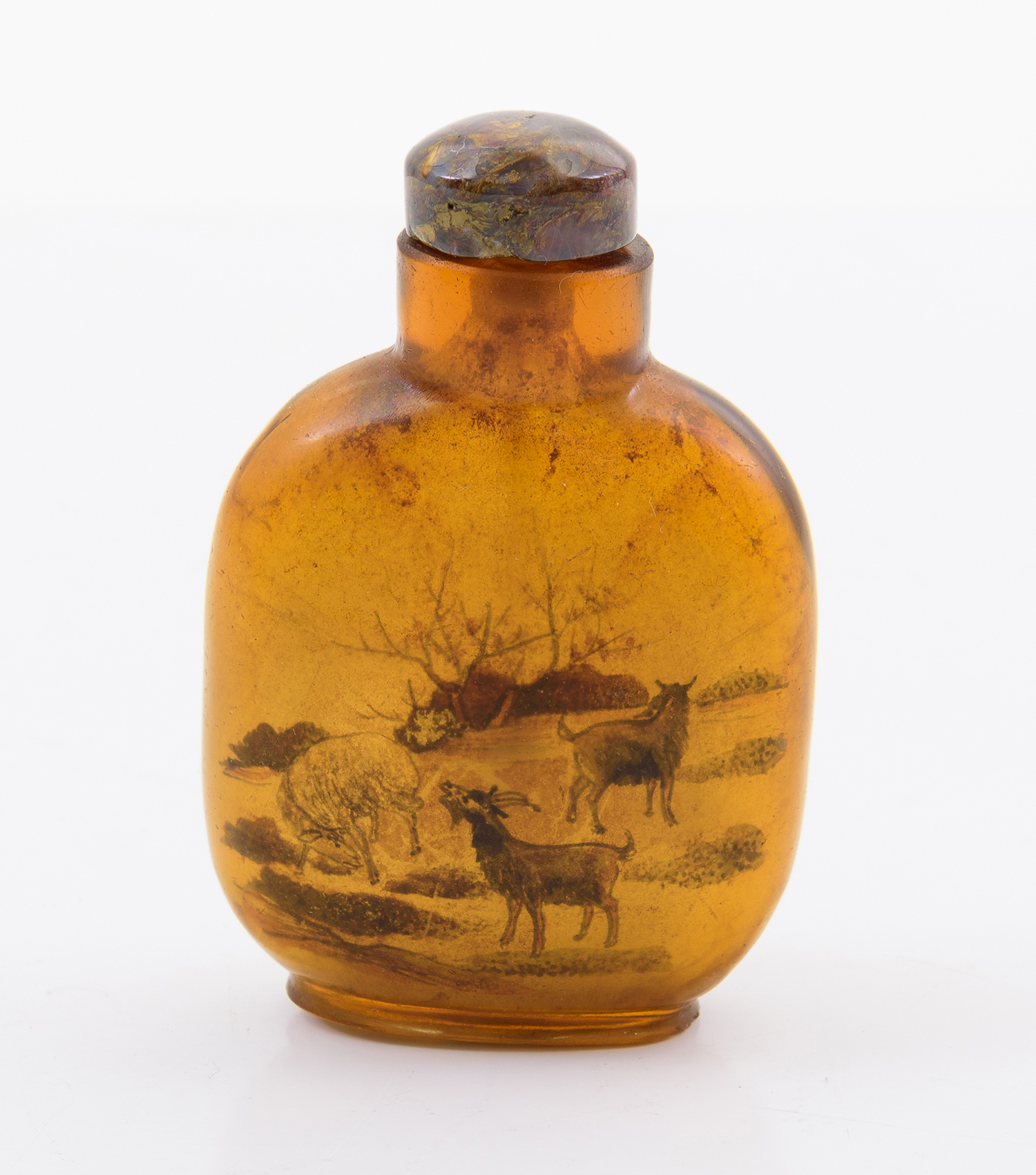 all decorated with figures or animals in landscape. with respective heights of 7.8 cm, 7.5 cm, 7.1 cm and 5.4 cm