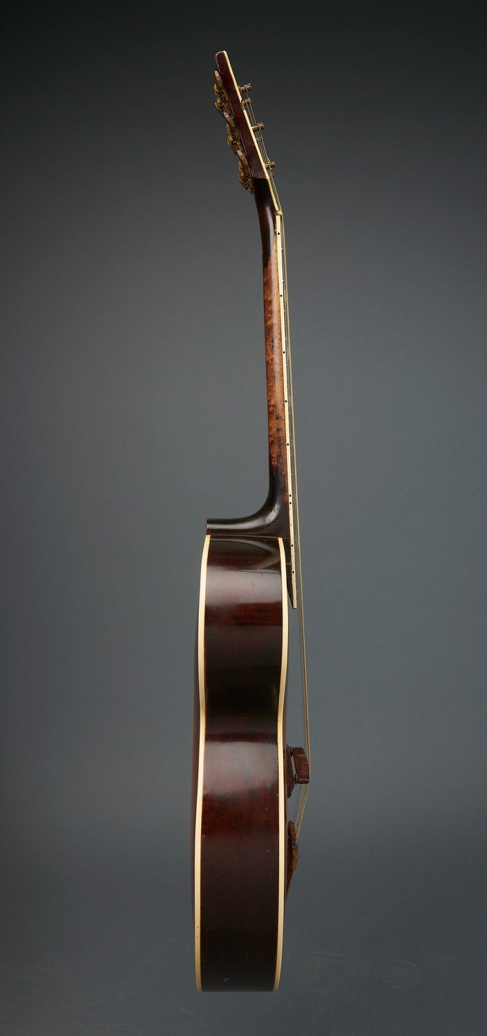 The Gibson logo inlaid in mother-of-pearl to the headstock and inset to the fingerboard, the serial number stamped verso to the headstock, and paper label to interior. Contains Brazilian rosewood and ivory.