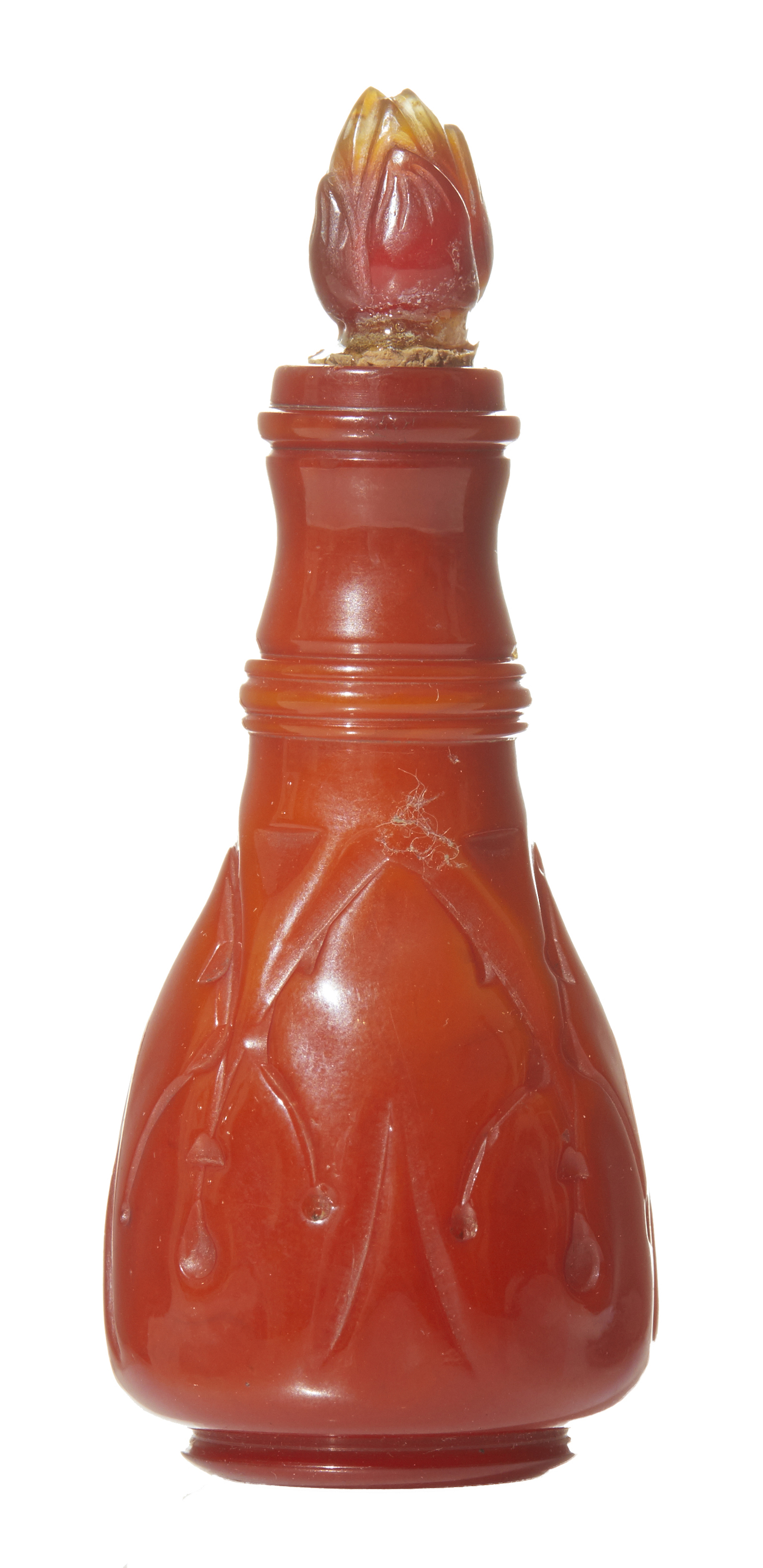 One of a pod shape with pale green jade stopper, the other with stylised floral carved decoration.
