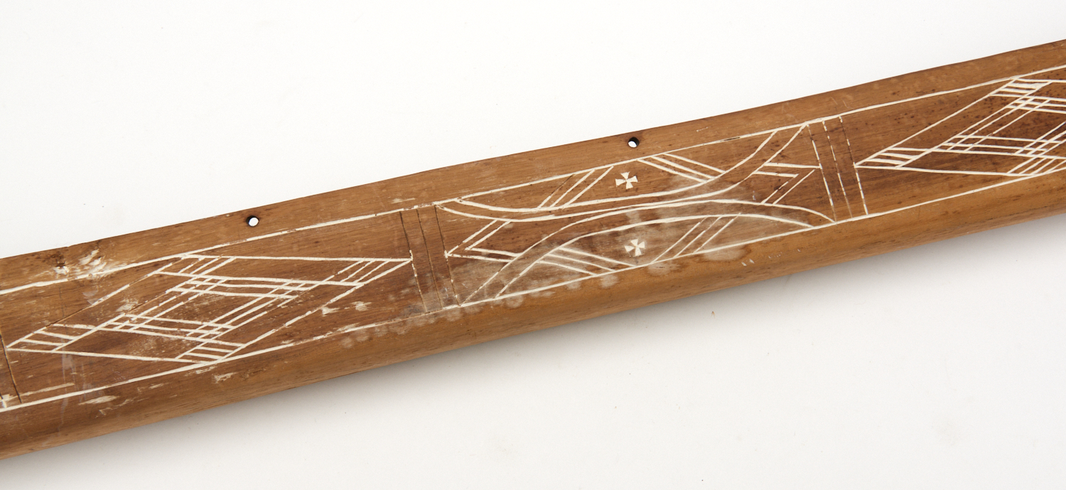A MODEL SAMOAN CANOE (PAO PAO) INCISED WITH GEOMETRIC MOTIFS L.183CM