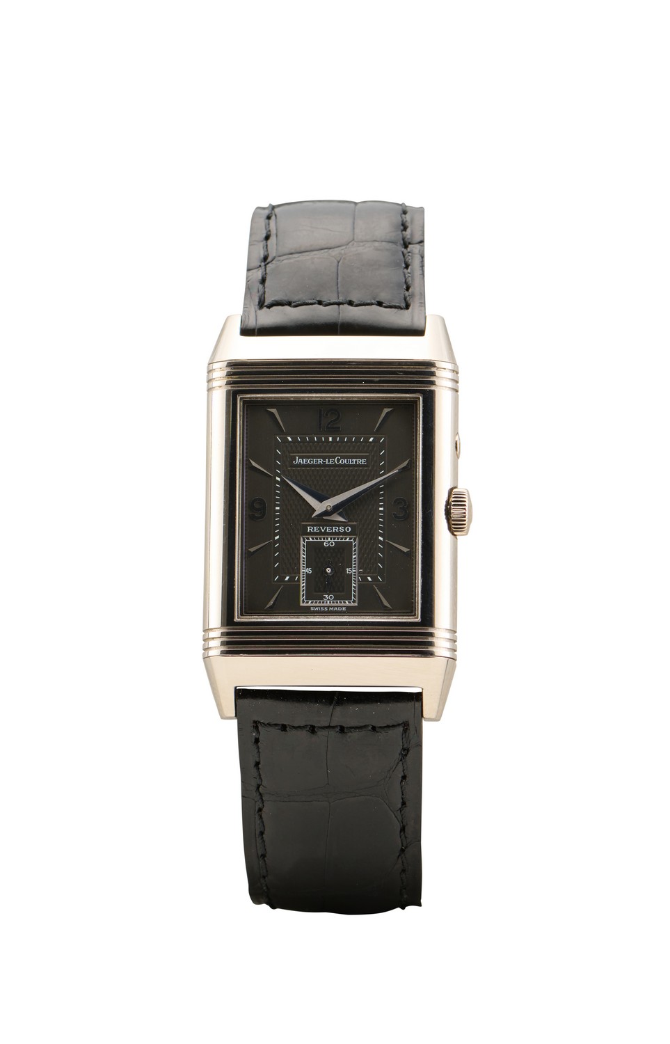 Closure Jaeger-LeCoultre black leather strap and18ct white gold folding clasp