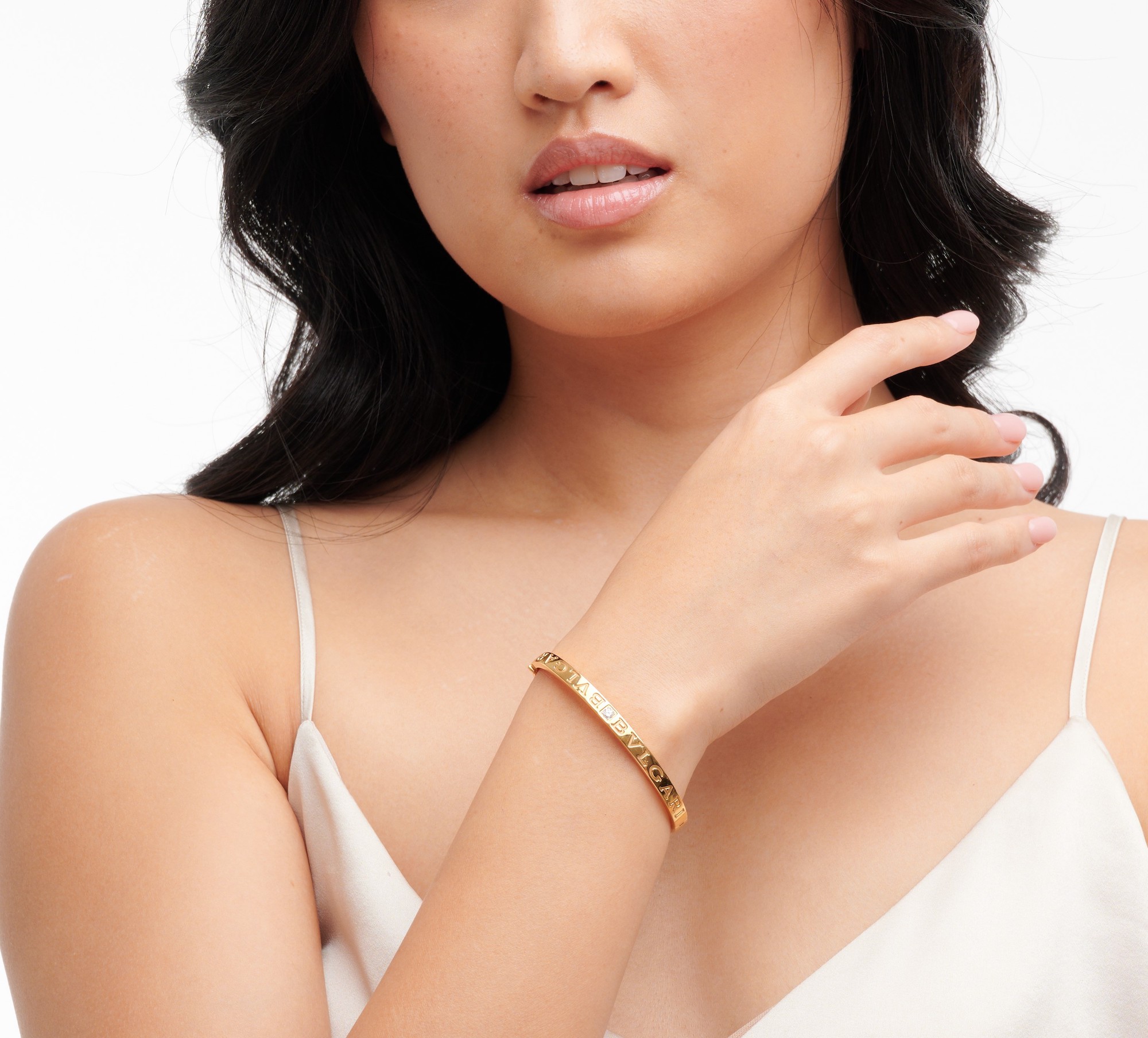 BULGARI, 18CT GOLD AND DIAMOND 'BVLGARI BVLGARI' BANGLE