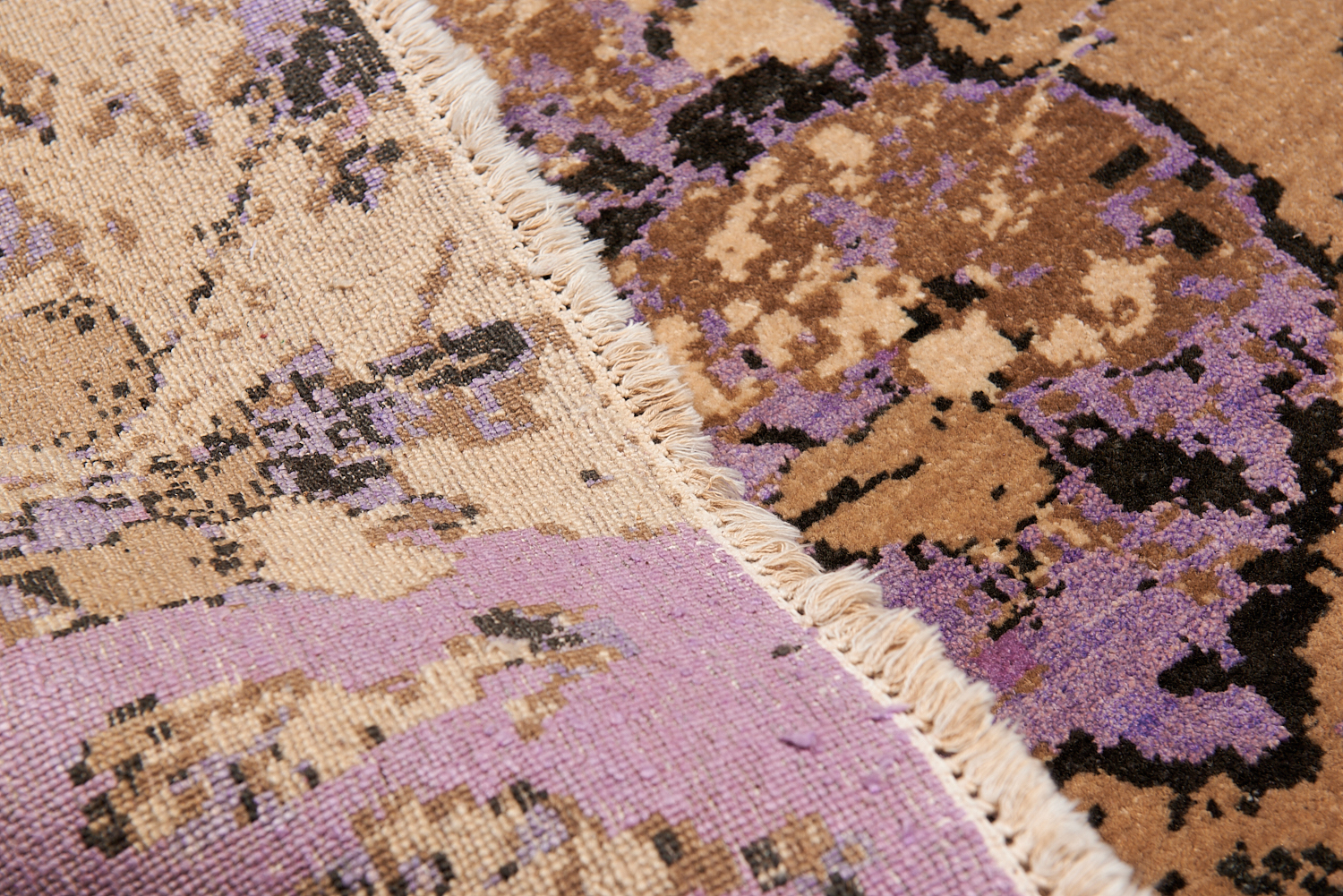 A NEW MODERN CONTEMPORARY DESIGNER CARPET, HAND SPUN WOOL & SILKY TEXTURE. FINELY HAND-KNOTTED WITH MODERN DESIGN OF THE ENTIRE IN TAUPE, MAUVE, CHARCOAL & CREAM TONES. SIZE: 310 X 246 CM ORIGIN: JAIPUR – RRP: $8,500 DOCUMENTATION OF AUTHENTICITY INCLUDED