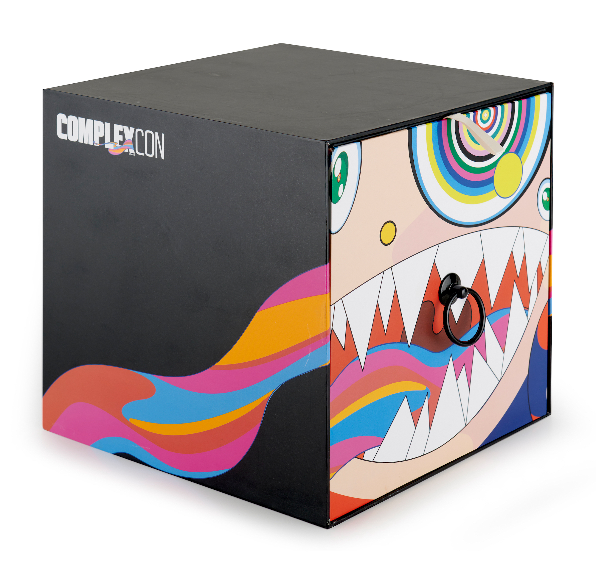 The Takashi Murakami Mr. Dob Figure is perhaps one of the most intriguing sculptures from the Japanese artist. The Mr. Dob figure displays Takashi's super-flat theory of artistry in conjunction with a 3D, almost lifelike attribute. The figure includes some of Murakami's most famous motifs, including a big mouth with sharp teeth, colourful eyes, and vibrant colours. The vinyl sculpture also has a shine to it, bringing to life Murakami's traditional 2D figures.