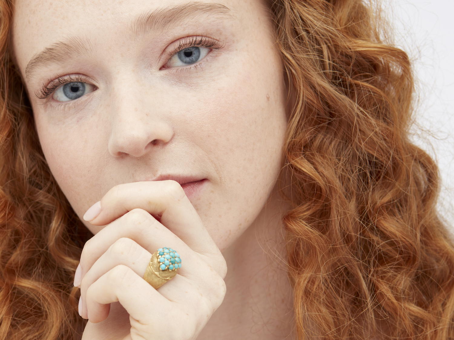 RUTH SATSKY, 18CT GOLD AND TURQUOISE RING
