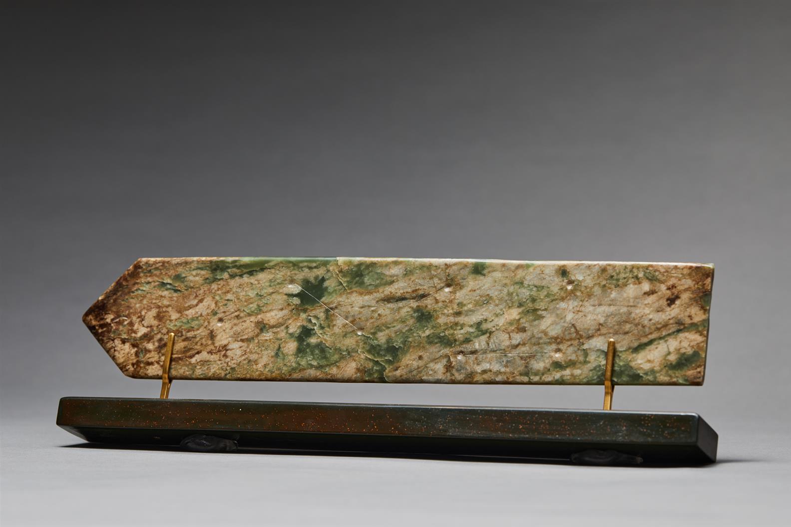 Small chip to one corner, wear to edges consistent with age, the comma-shape carved to end likely inherent to original design.