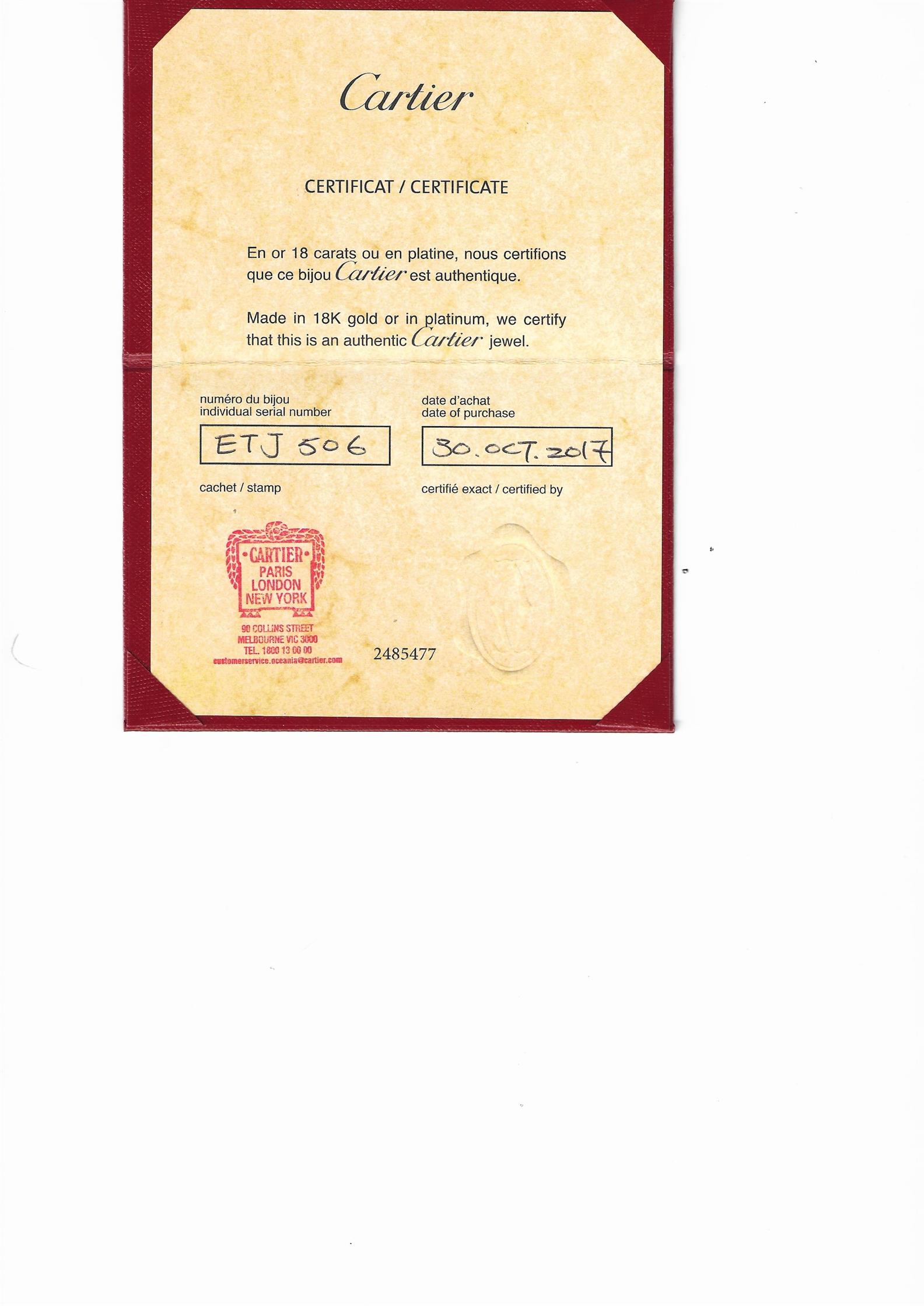 a Cartier Authentication Certificate, dated 30 October 2017;