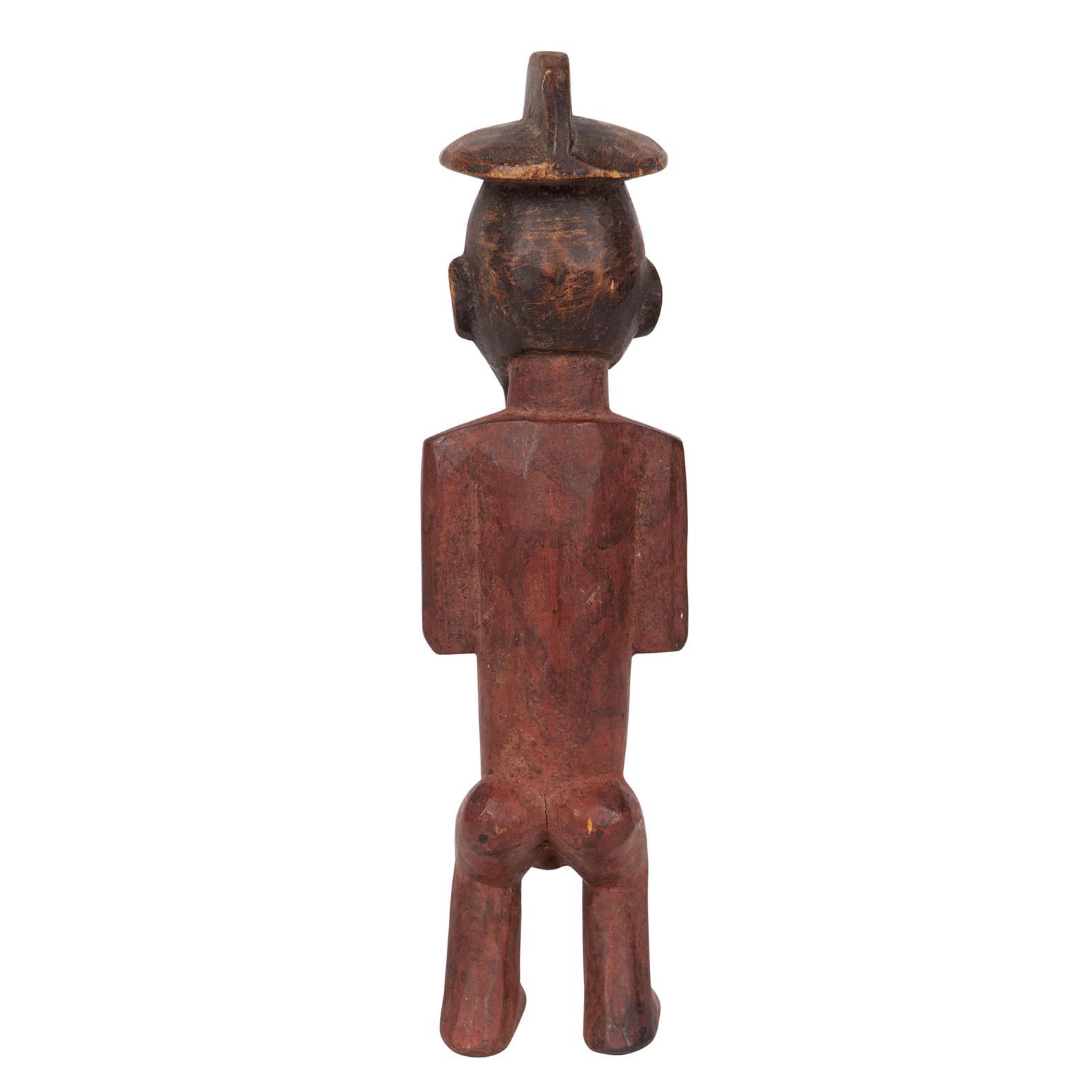 African Republic of Congo, standing with the geometric formed legs flexed, the hands on the protruding stomach which contained the fetish material, well patinated.