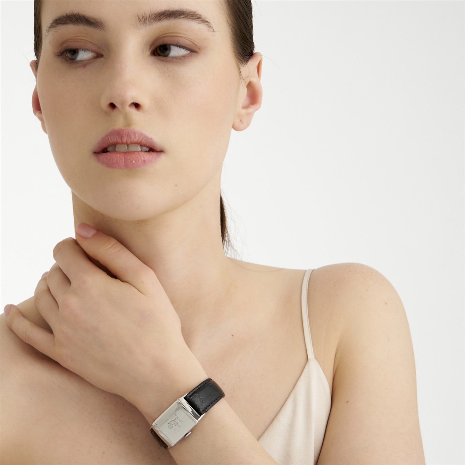 Case: reversible rectangular with reeded ends, the reverse engraved with a mythical wolf, within a 'Staybrite' frame' inner engraving To James from Emma, no. 18051
