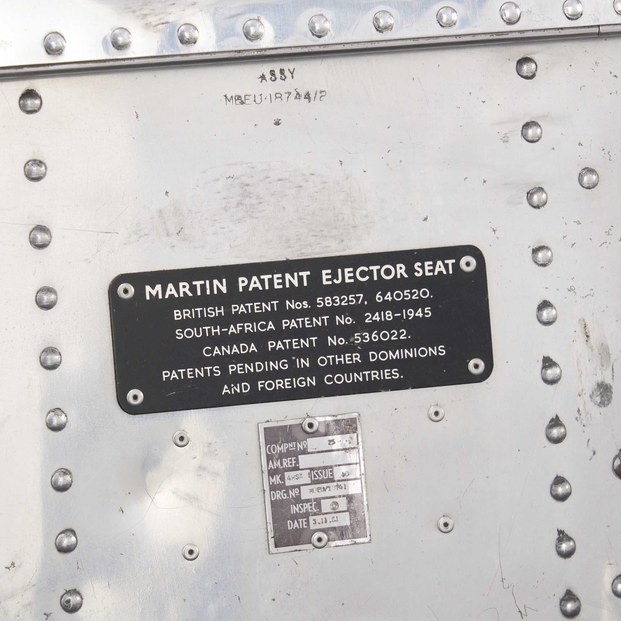 Riveted aluminium with patent plaques. MK.4MSA