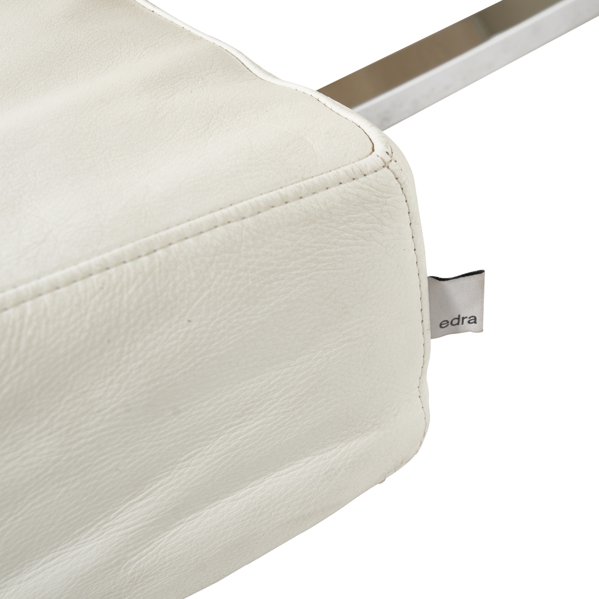 Multi-functional with tilt adjustable components upholstered in cream leather on chromed metal frame.