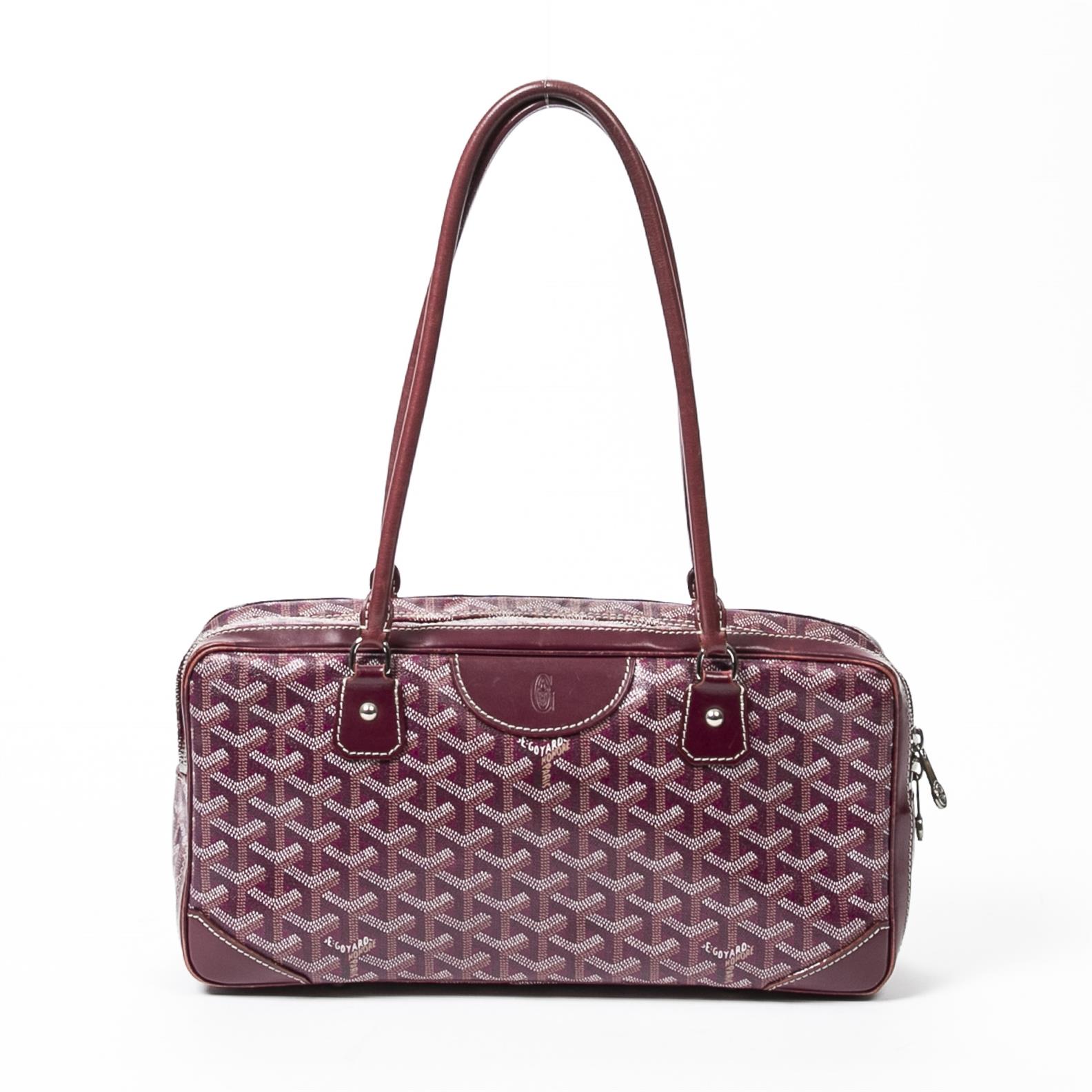 Styled in burgundy and white Goyardine coated canvas with burgundy leather trim and gold tone hardware, 32 x 16 x 9cm.