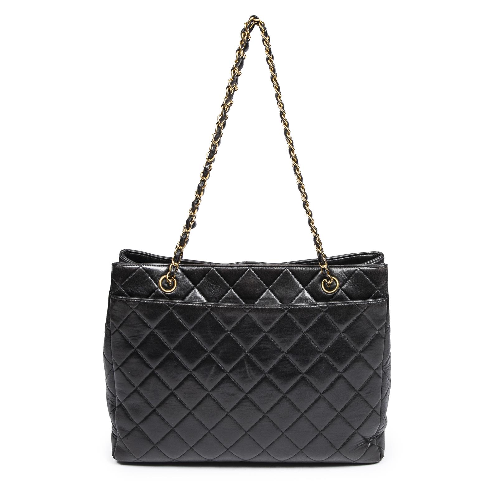 CHANEL, VINTAGE STRAIGHT SINGLE FLAP SHOULDER BAG - Styled in black quilted lambskin leather with interlaced chain shoulder strap an...