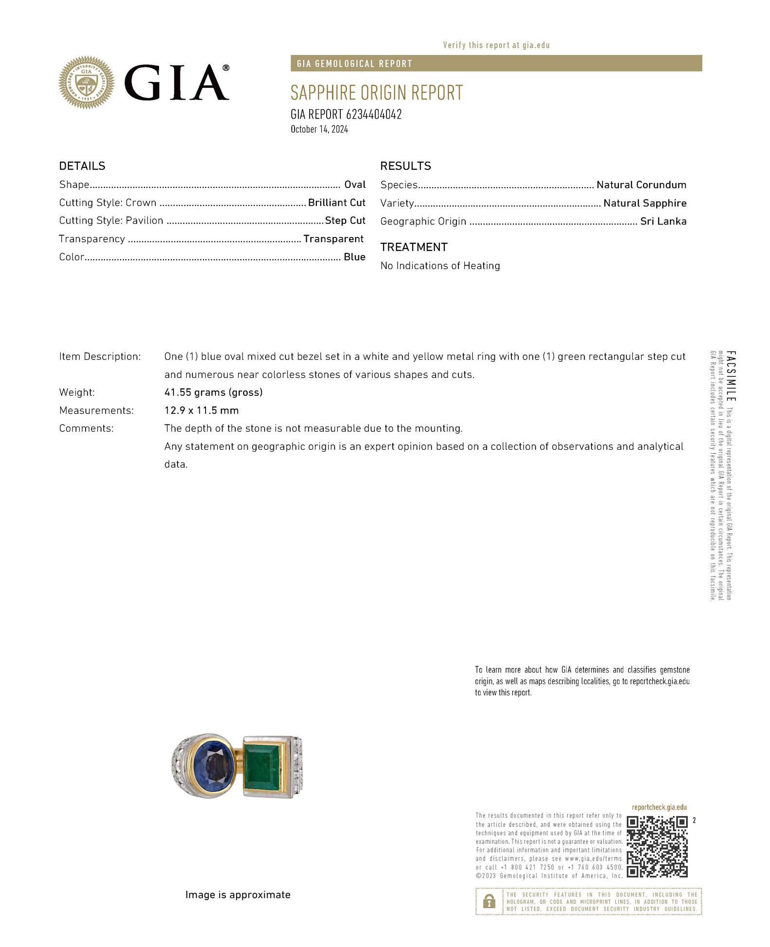 a GIA report numbered 6234404042, dated 14 October 2024, stating that the sapphire is natural, of Sri Lankan origin, with no evidence of heating.