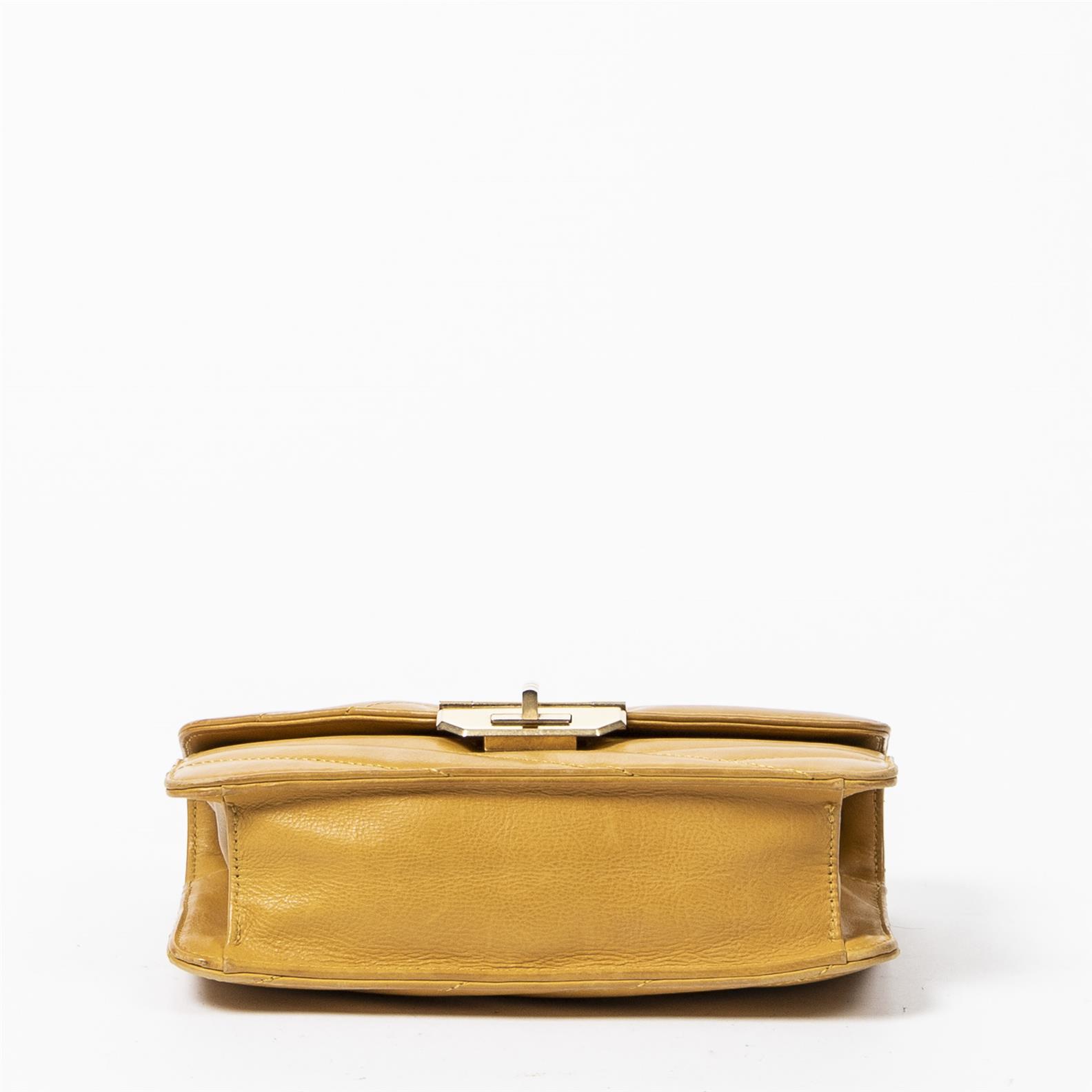 Styled in beige diagonal quilted leather with interlaced chain strap and gold tone hardware, 21 x 13 x 2.5cm.