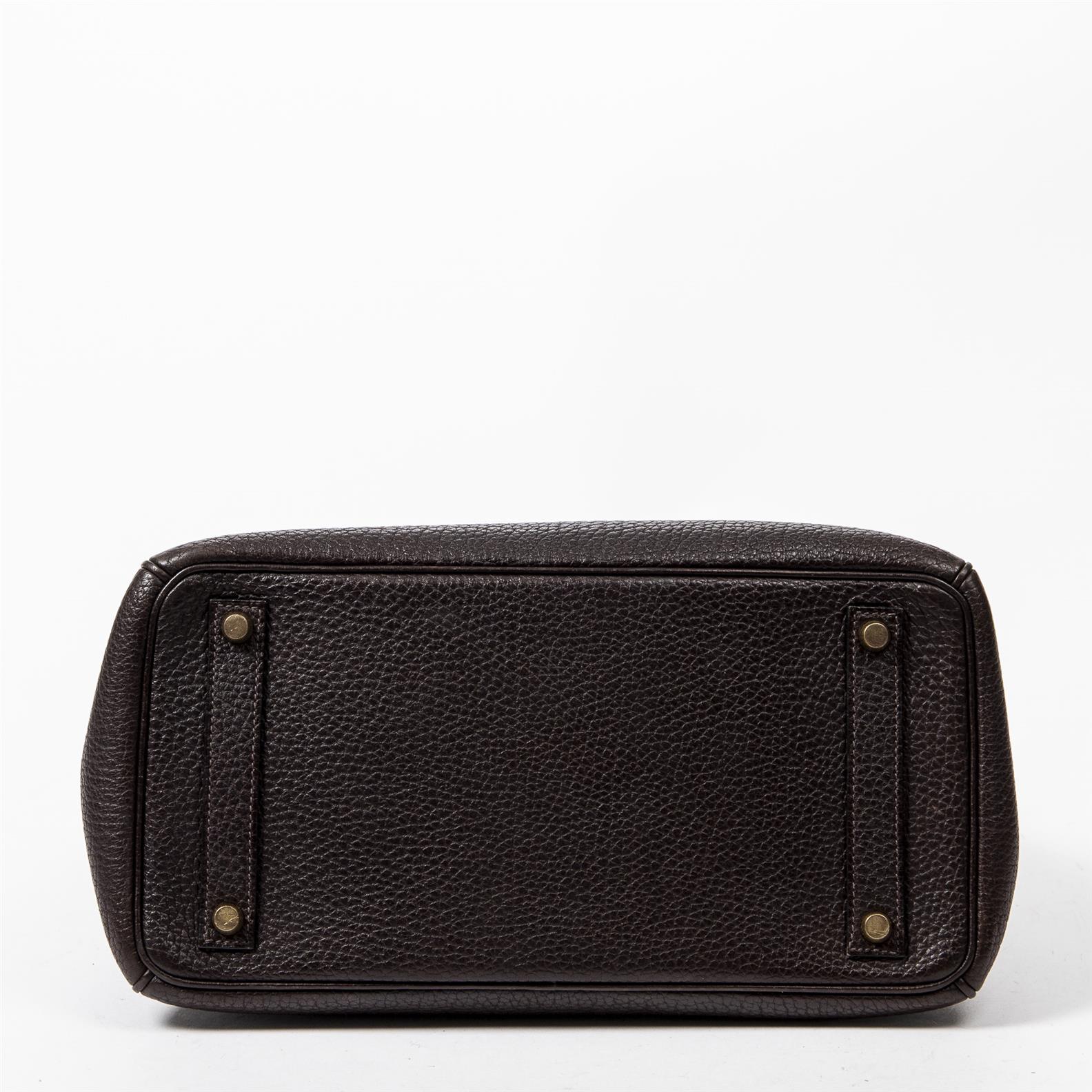 Styled in dark brown Togo Leather and gold tone hardware, 30 x 22 x 16cm.