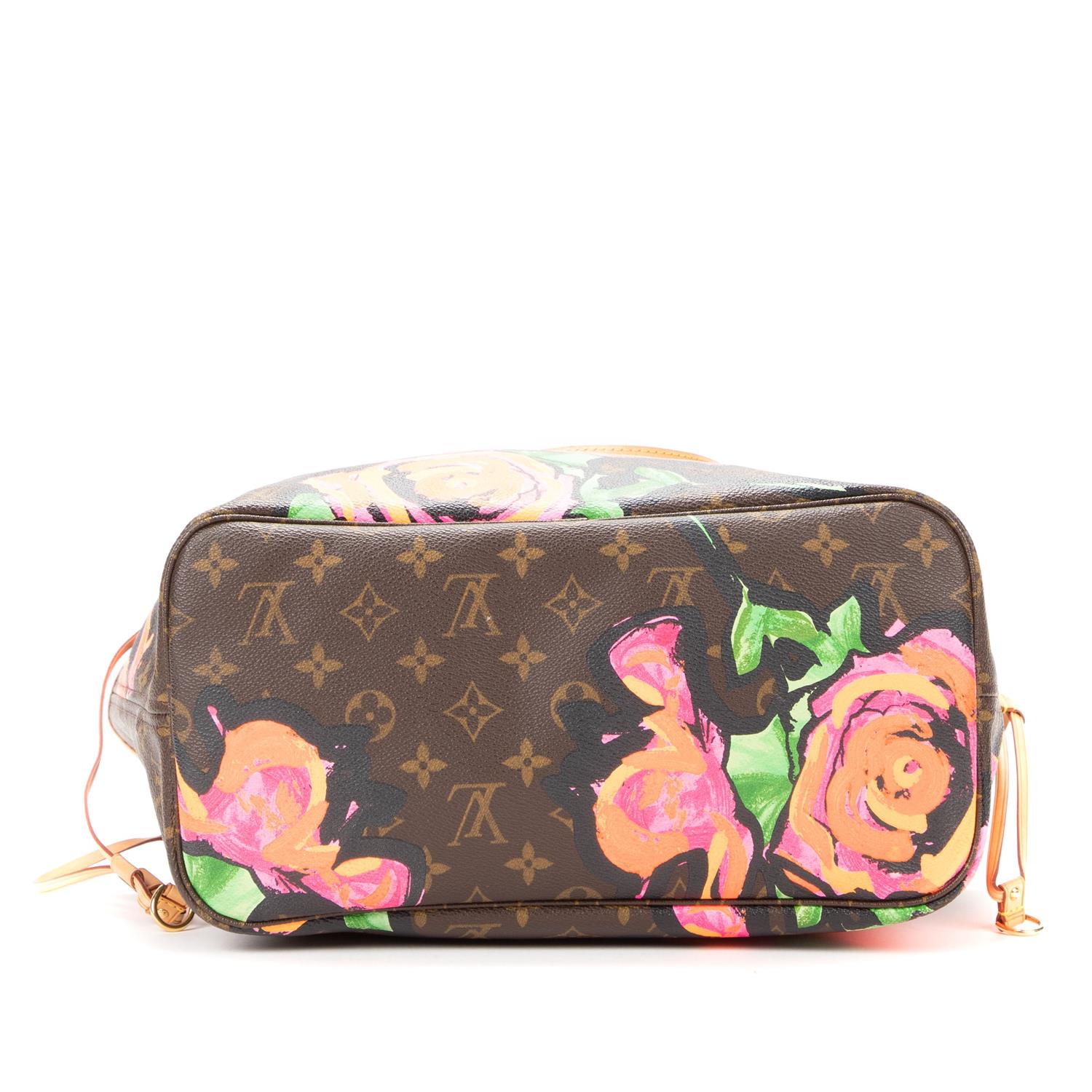 Styled in pink and brown flower printed monogram canvas with Vachetta leather trim and golden brass tome hardware, 32 x 29 x 15cm.