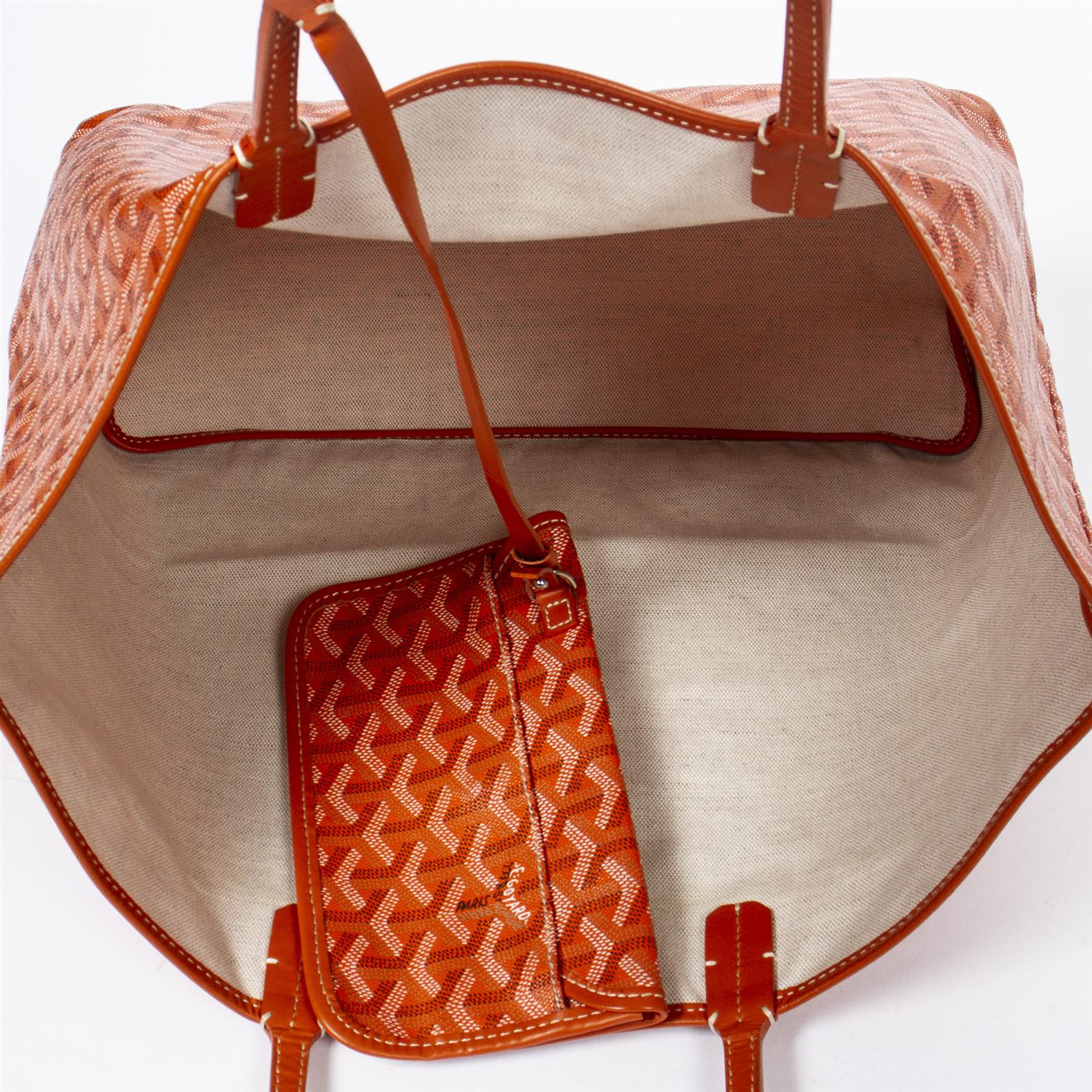 Styled in orange Goyardine Monogram Canvas with orange leather trim and silver tone hardware, 33 x 26 x 15cm.