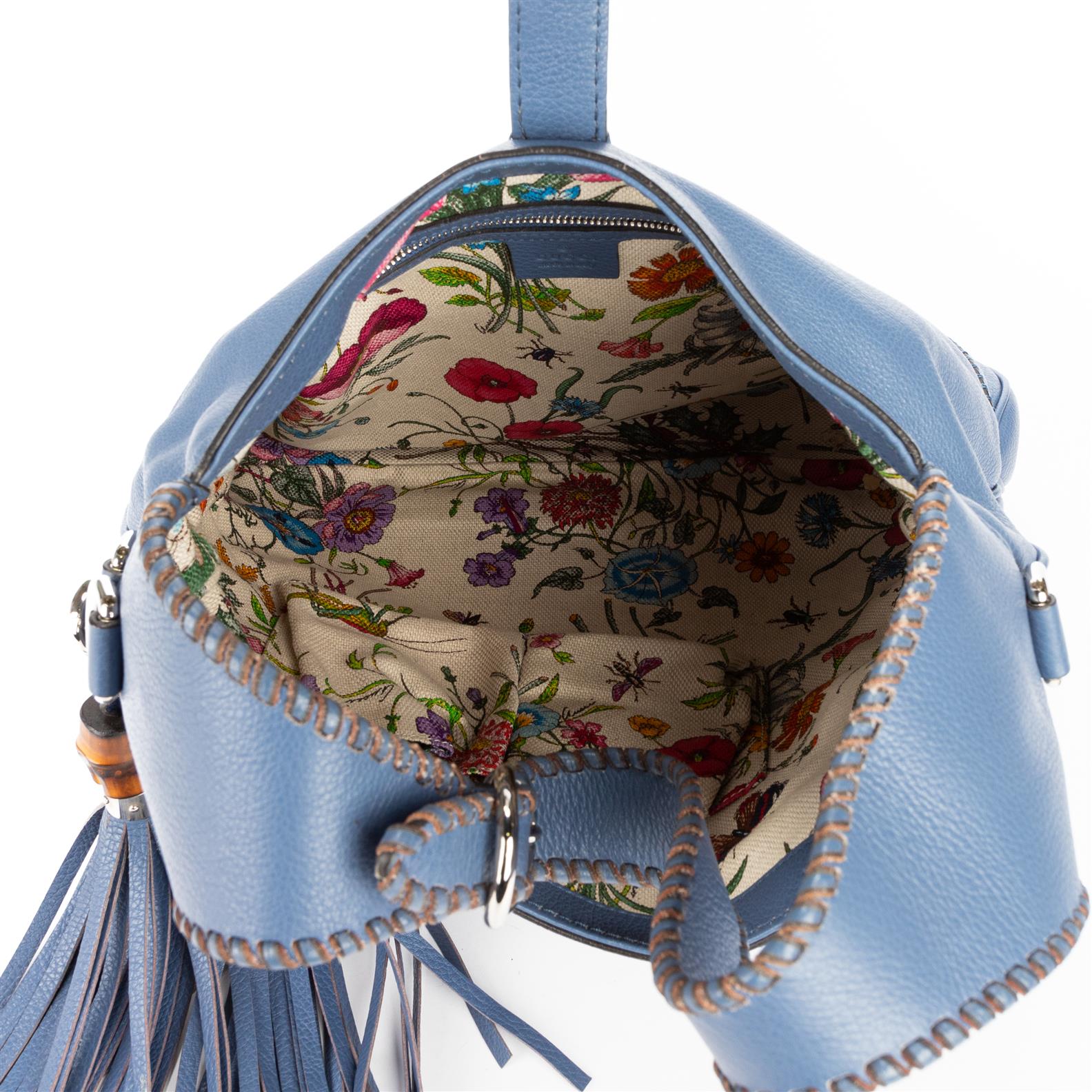 A BAMBOO BLUE HANDBAG BY GUCCI