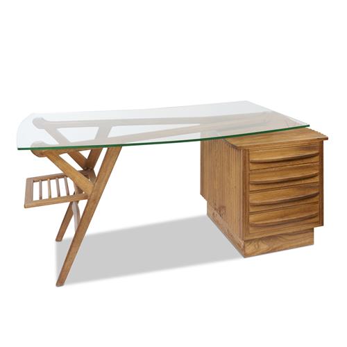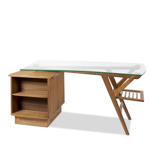 A GLASS-TOPPED BLACKBEAN DESK BY SCHULIM KRIMPER