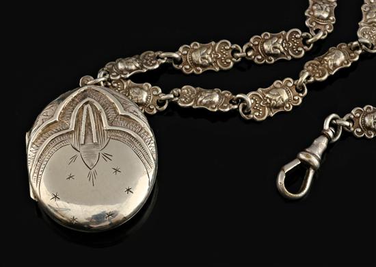 A silver locket and collar