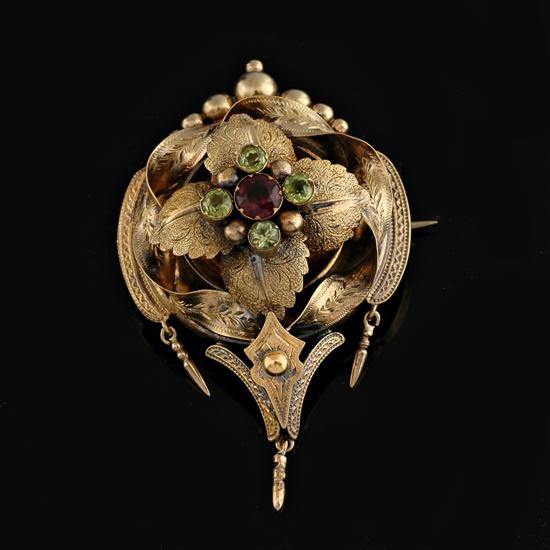 A Victorian garnet and peridot brooch