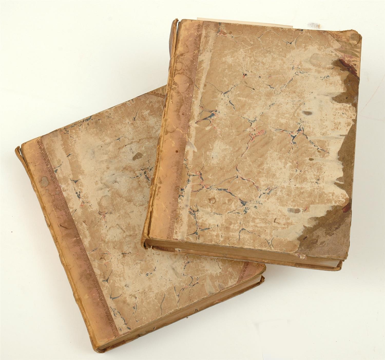 2 volumes bound in half leather, boards faded , spine to one volume partially detached