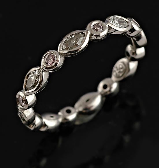 With seven marquise cut diamonds weighing 0.57cts alternating with seven pink Argyle diamonds weighing 0.16cts, all in 18ct white gold.